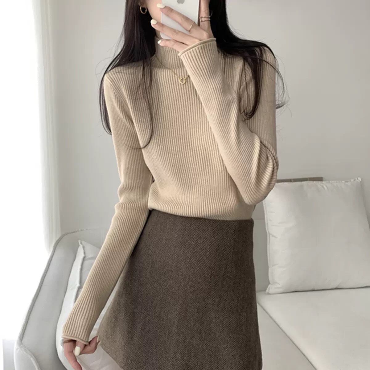 トップス ニットソー セーター プルオーバー 袖あり 長袖 ハイネック タイト 細身 リブ リブニット ニット きれいめ シンプル 大人 上品 おしゃれ お洒落 かっこいい 大人女子 こなれ感 クール セクシー 無地 春 秋 冬 レディース ビジネス OL 通勤 デート お出かけ 女子会 着回し 普段使い お揃い 双子 韓国 韓国系 オルチャン ファッション コーデ スタイル モテ 定番 S M L XL 色展開 大人カラー モノトーン 秋カラー カラバリ