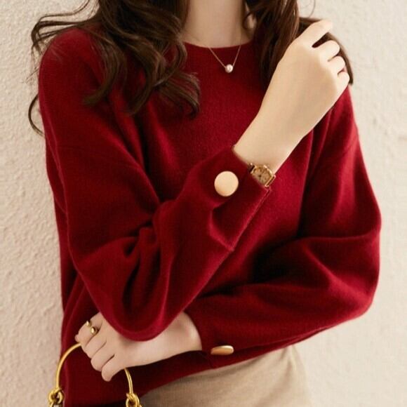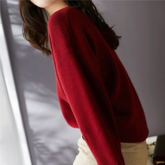 トップス ブラウス カットソー 袖あり 長袖 ドロップショルダー Uネック ラウンドネック 襟なし コットン きれいめ シンプル 大人 上品 おしゃれ お洒落 レトロ 大人女子 こなれ感 クール エレガント モダン 無地 春 秋 冬 10代 20代 30代 40代 50代 レディース ビジネス OL 通勤 デート お出かけ 女子会 休日 韓国 韓国系 オルチャン ファッション コーデ モテ S M L XL 色展開 黒 ブラック 赤 レッド ワインレッド 大人カラー 秋カラー