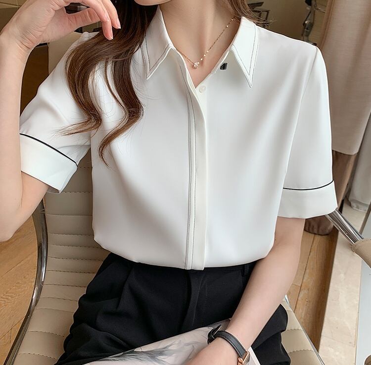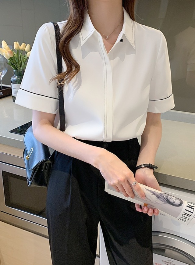 トップス シャツ ブラウス ミディアム丈 袖あり 半袖 襟付き ポロ襟 ワイド 切り替えデザイン パイピング 大人可愛い きれいめ シンプル カジュアル 大人 上品 お洒落 大人女子 こなれ感 ラフ ガーリー クール エレガント 主役級 フォーマル 抜け感 無地 春 夏 秋 20代 30代 40代 ママ 通勤 学生 通学 デート お出かけ 女子会 休日 旅行 着回し 普段使い 重ね着 楽ちん 体系カバー 定番 トレンド 流行 インスタ映え S M L XL 2XL ゆったり ホワイト