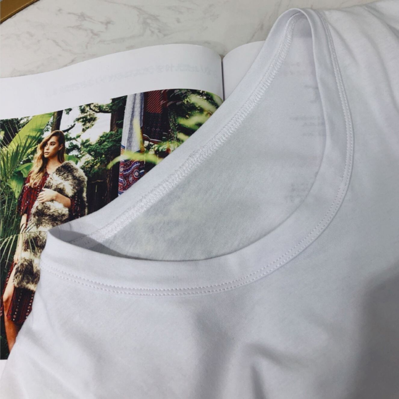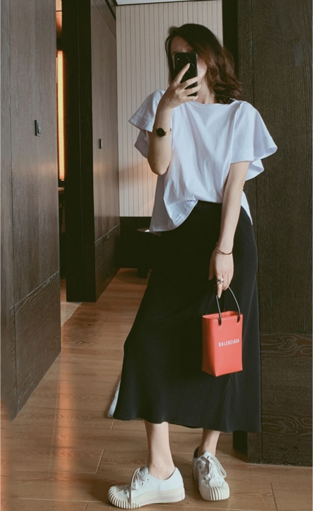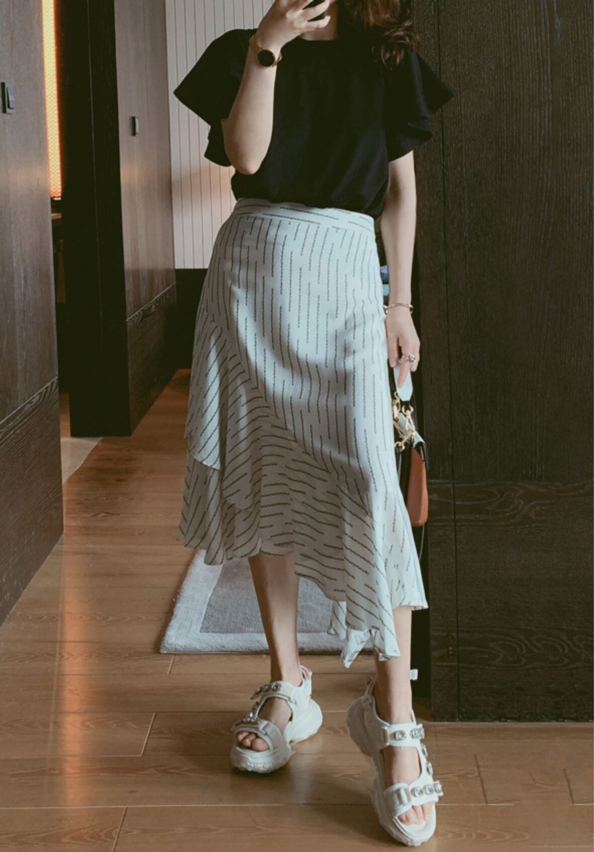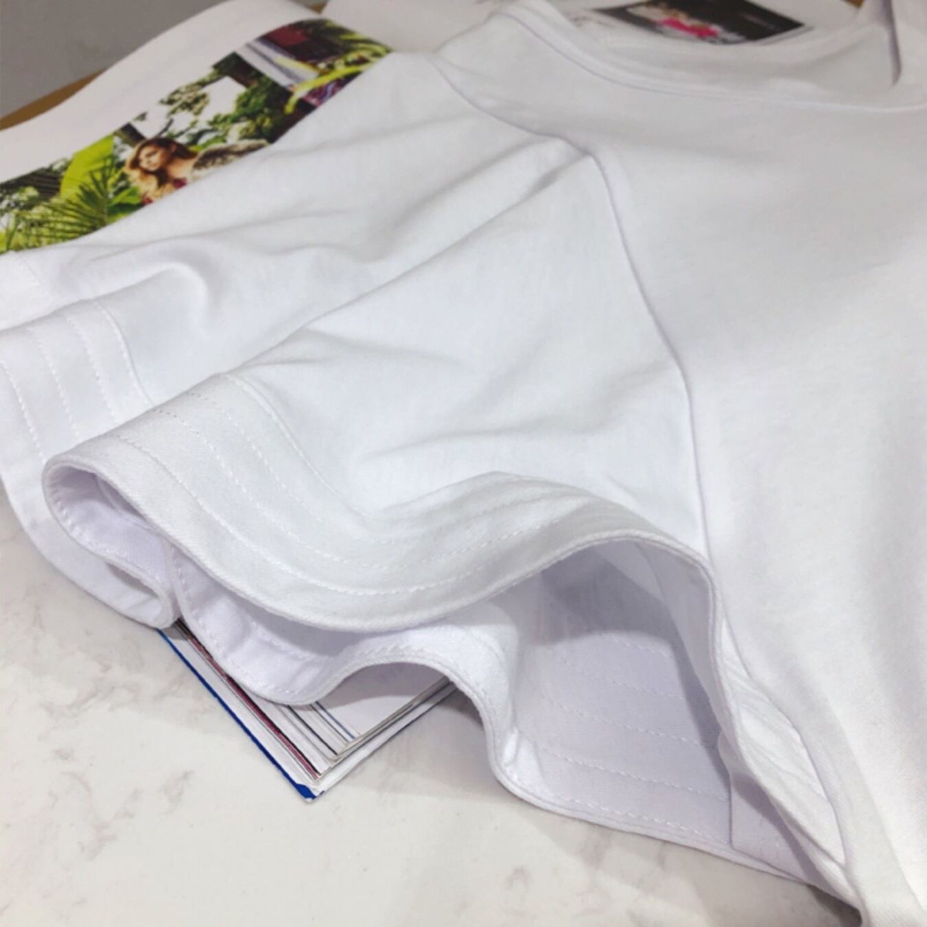 シンプルながらフリル袖が女性らしい半袖Tシャツ。