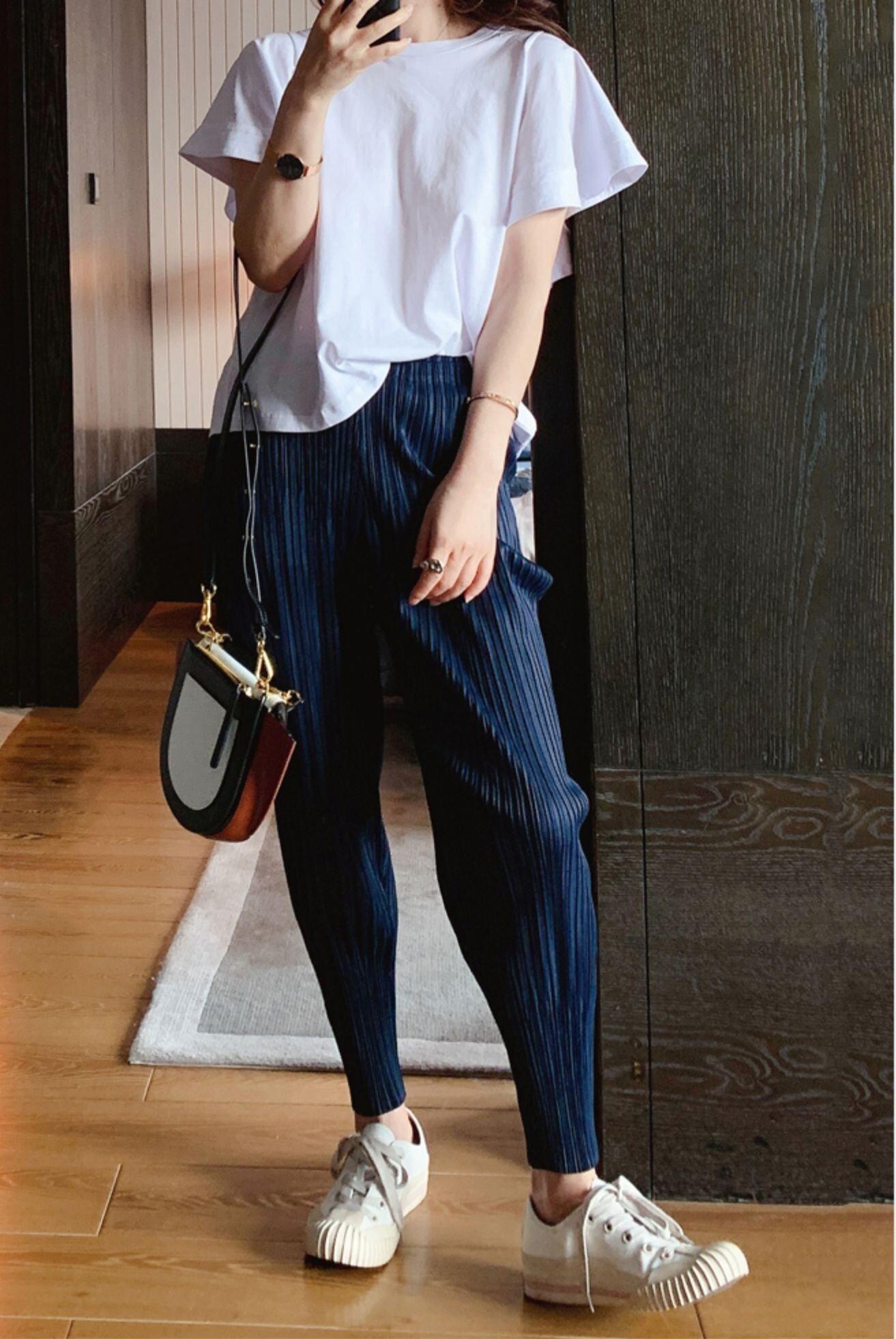 クルーネックで首元に抜け感をプラス。パンツやスカートどちらにも合わせやすいアイテムです。