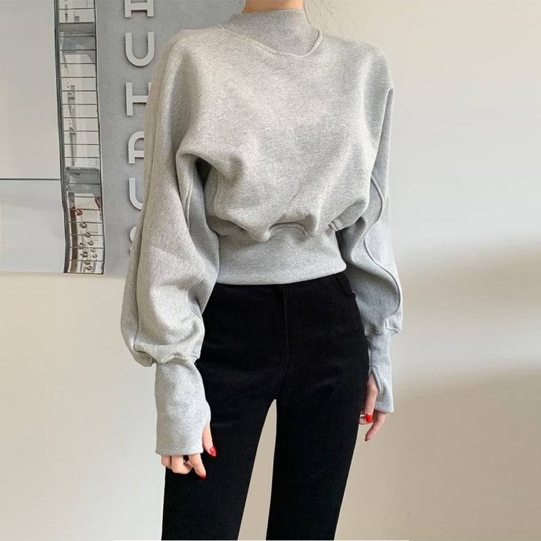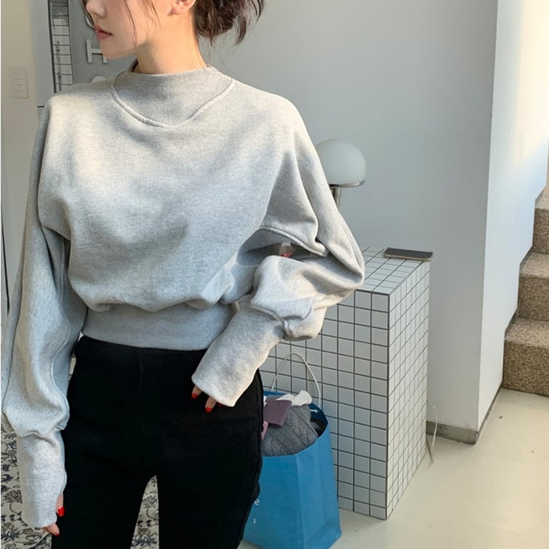 シャツ トップス クロップドスウェットシャツ レディース スウェット プルオーバー ショート丈 長袖 ハイネック 無地 クロップド丈 灰色 ライトグレー オシャレ シンプル きちんと感 可愛い キレイめ 上品 フェミニン 大人 モード シック 知的 カジュアル ハンサム マニッシュ スポーティ 春 夏 秋 冬 おでかけ シーズンレス デイリー 仕事 オンオフ兼用 リモート会議 公園コーデ アウトドア 普段着 スマート コンパクト 細見え スタイルアップ 高見え 新鮮 上級者 主役級 今どき トレンド
