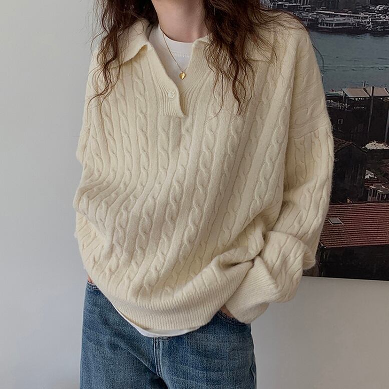 ニット トップス 襟付きケーブルニット レディース 襟付きニット ケーブルニット ビッグカラーニット セーター プルオーバー 長袖 襟付き ドロップショルダー ケーブル編み クリームベージュ ふわもこ オシャレ シンプル きちんと感 可愛い キレイめ 上品 フェミニン ちょい甘 知的 カジュアル マニッシュ 春 夏 秋 冬 おでかけ デイリー 仕事 オンオフ兼用 リモート会議 公園コーデ アウトドア 普段着 ヘビロテ 機能性 高見え 新鮮 トレンド オーバーサイズ ゆったり 体型カバー インスタ映え