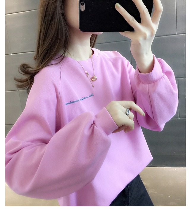 胸&背中刺しゅう きれい色 トップス プルオーバー スウェット ミディアム丈 長袖 ラグランスリーブ 襟なし クルーネック バックシャン バックコンシャス 刺繍 かわいい 大人可愛い シンプル カジュアル おしゃれ お洒落 上品 こなれ感 無地 春 秋 レディース 女性用 ママ 女の子 学生 通学 デート お出かけ 公園デビュー 女子会 普段使い 重ね着 着回し 韓国風 オルチャン ファッション スタイル 体系カバー S M L XL 青 レイクブルー 緑 グリーン 紫 フクシア オレンジピンク カラバリ