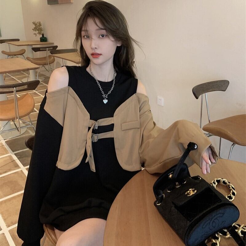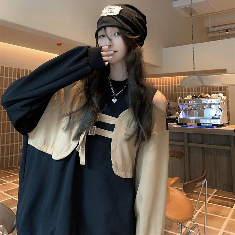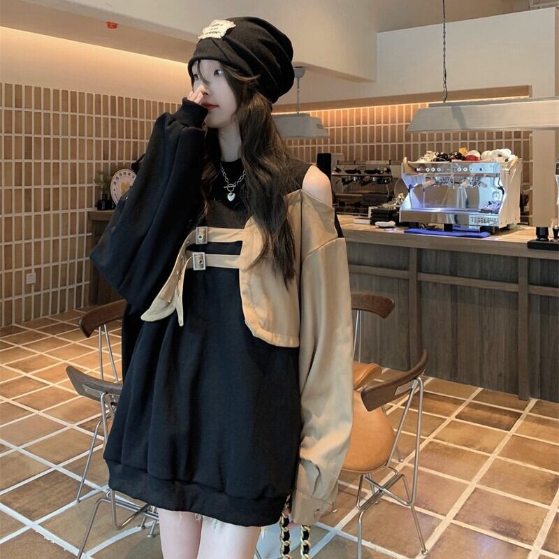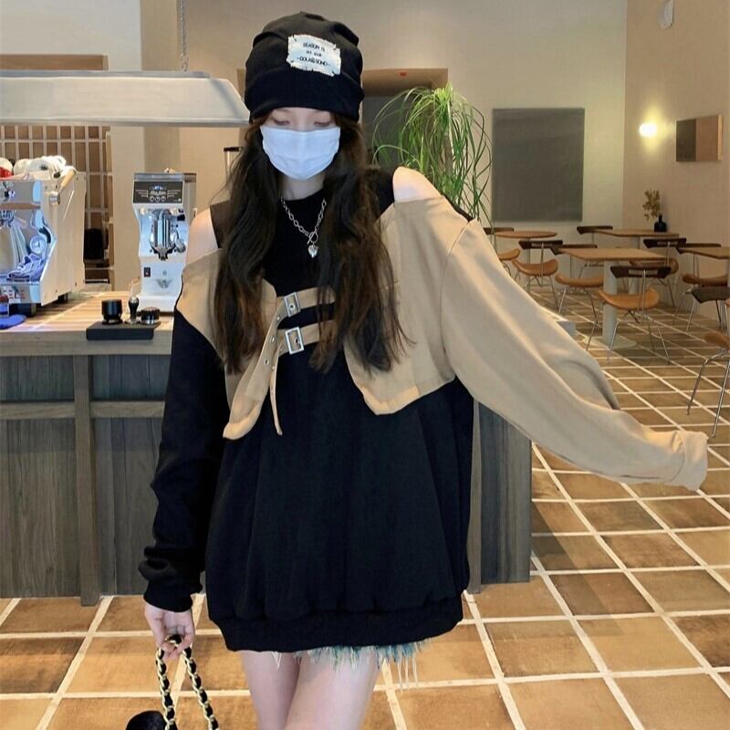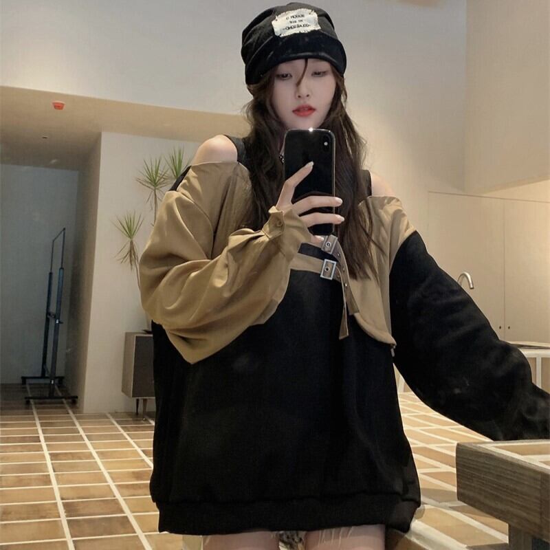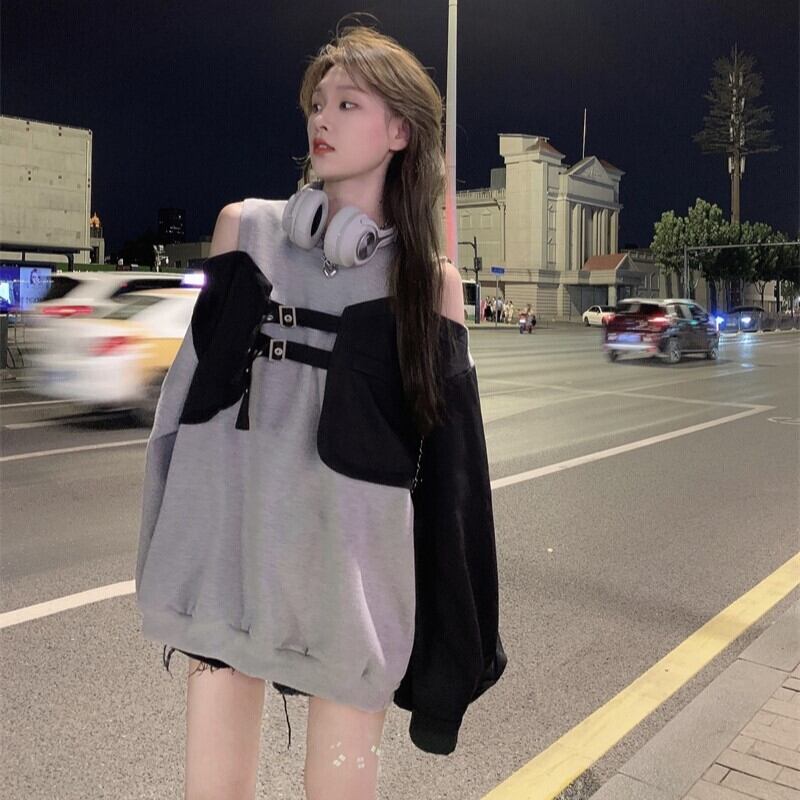 トップス カットソー 長袖 ラウンドネック オフショルダー Iライン 切り替えデザイン ドッキング かわいい 大人可愛い カジュアル 大人 おしゃれ お洒落 かっこいい エキゾチック 大人可愛い 大人女子 こなれ感 ラフ マニッシュ キュート 個性的 クール モード系 存在感 抜け感 無地 10代 20代 30代 レディース 女性用 学生 デート お出かけ 女子会 休日 イベント 旅行 着回し 普段使い スタイル 楽ちん モテ 体系カバー M L XL ゆったり ゆる 黒 ブラック 灰色 グレー
