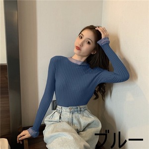 トップス ニットソー 袖あり 長袖 フレアスリーブ ラウンドネック スリム 細身 Iライン 切り替えデザイン リブ 透け感 ニット 薄手 かわいい 大人可愛い きれいめ シンプル 大人 上品 おしゃれ お洒落 大人可愛い 大人女子 こなれ感 ラブリー キュート ガーリー エレガント 存在感 とろみ感 抜け感 春 10代 20代 30代 40代 レディース 女性用 OL 学生 通学 デート お出かけ 女子会 休日 イベント 旅行 ホテル レストラン 着回し 普段使い モテ S M L XL