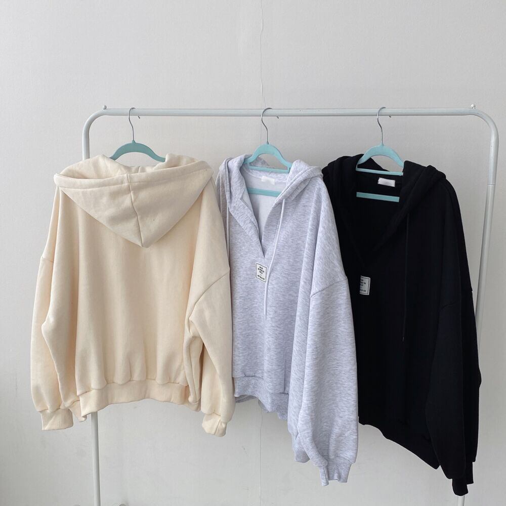 ざっくりとしたVネックでゆったり感のあるフーディーです
