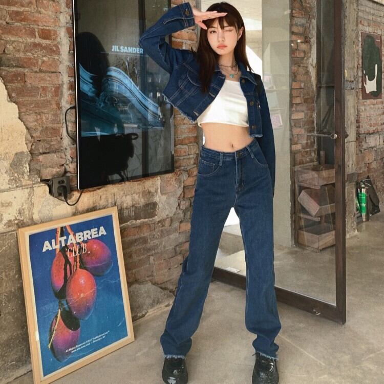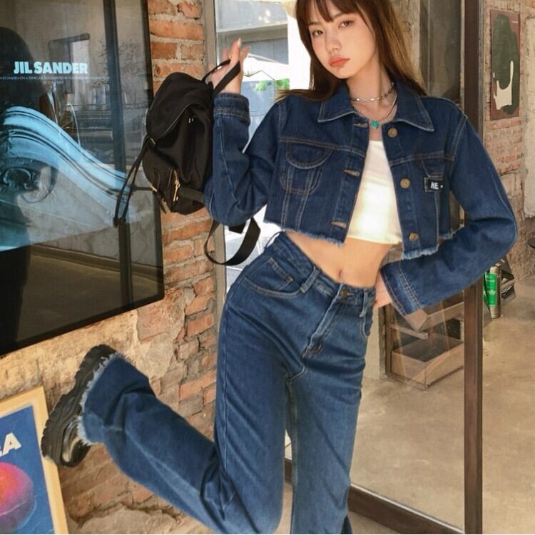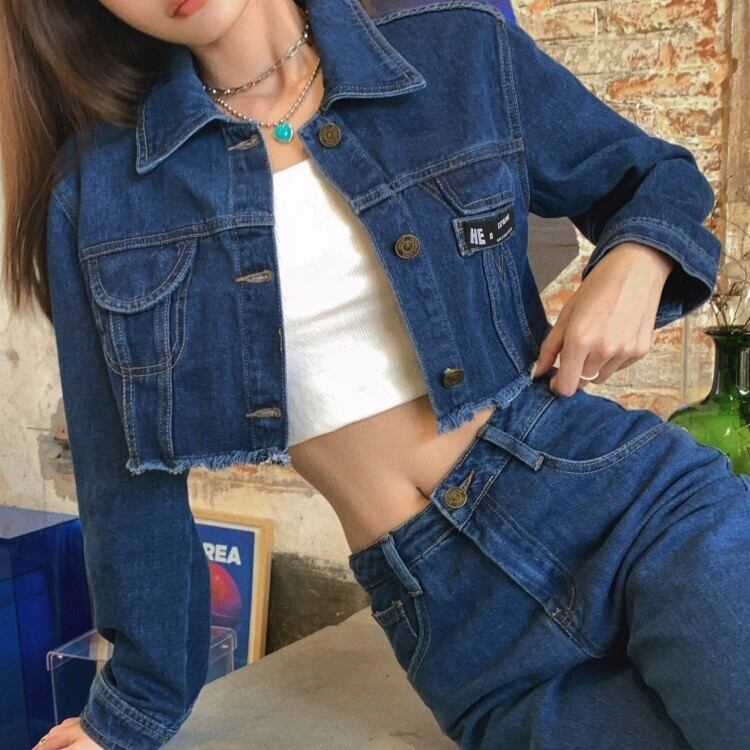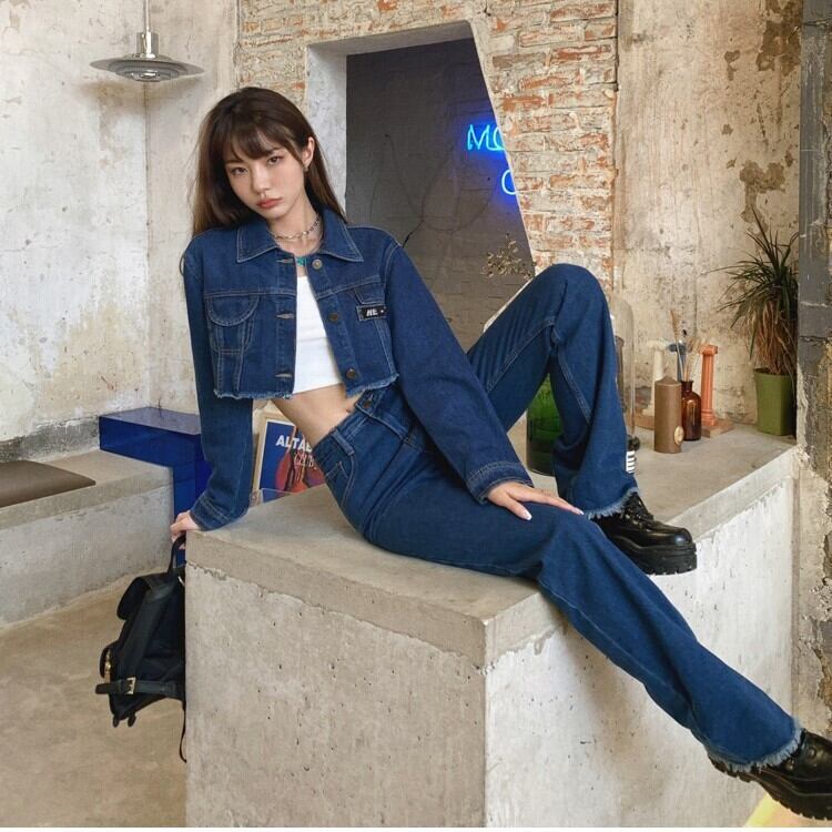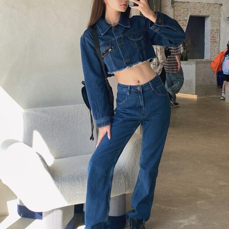 セットアップ トップス ボトムス パンツ ジャケット シャンパー Gジャン Gパン ズボン ストレートパンツ デニムパンツ 袖あり 長袖 襟付き スリム タイト 細身 ストレート 前開き デニム コットン 上下セット 2点セット ツーピース きれいめ シンプル カジュアル 大人 上品 おしゃれ お洒落 かっこいい レトロ 大人女子 個性的 クール モダン 存在感 無地 春 秋 冬 10代 20代 30代 40代 50代 60代 レディース お出かけ お揃い 双子 韓国 韓国系 オルチャン ファッション