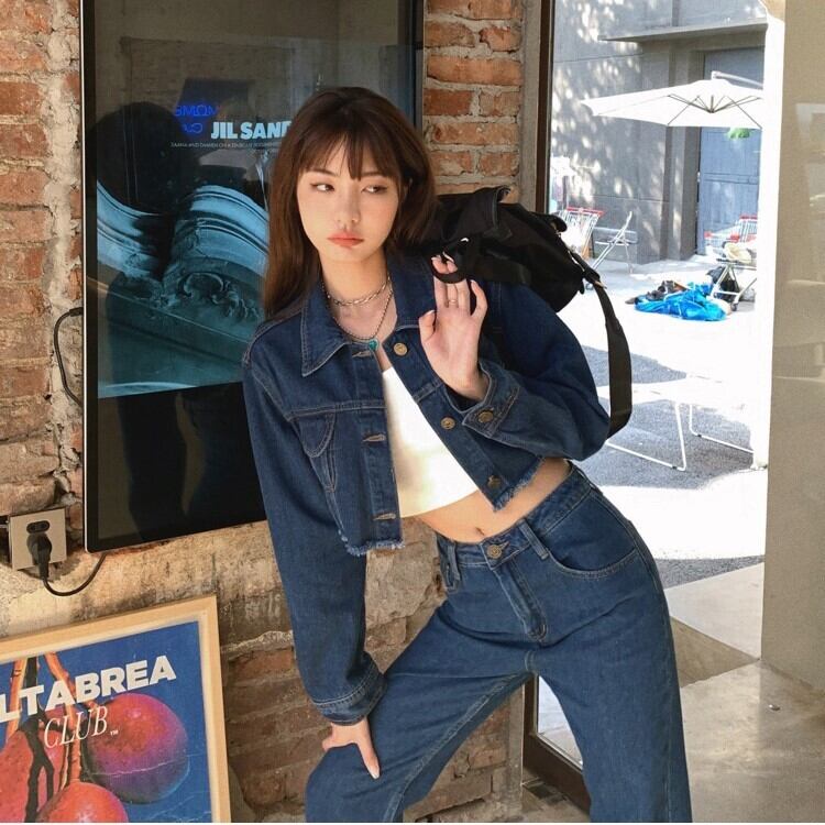 短めのジャケットが全体的にクールな印象から可愛さもプラス♪