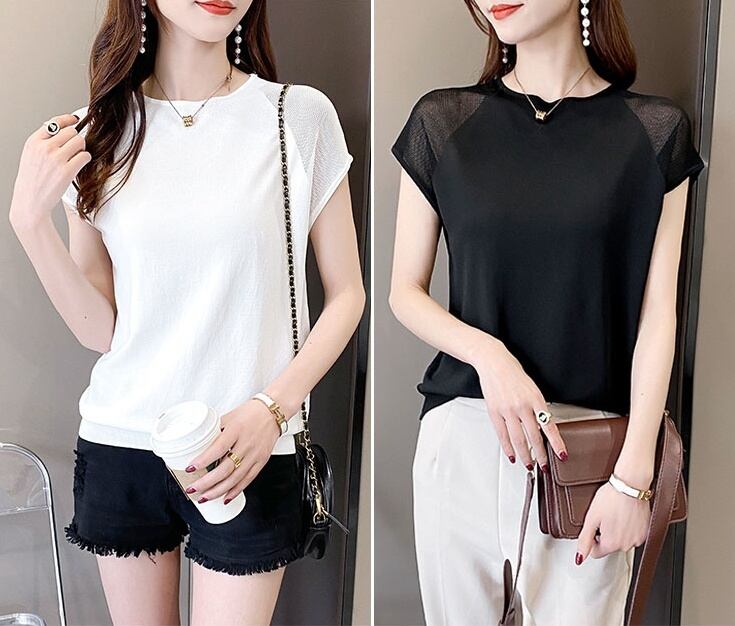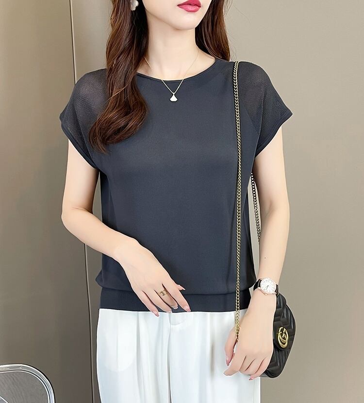 トップス カットソー ミディアム丈 袖あり 半袖 ラウンドネック 襟なし ワイド リブ 透け感 サマーニット 薄手 透かし彫り 大人可愛い きれいめ シンプル カジュアル 大人 上品 お洒落 大人女子 こなれ感 ラフ ガーリー エレガント 主役級 抜け感 無地 春 夏 秋 20代 30代 40代 ママ 通勤 学生 通学 デート お出かけ 女子会 休日 旅行 着回し 普段使い 重ね着 オルチャン 楽ちん 体系カバー 定番 トレンド 流行 S M L XL 2XL グレー ブラック ホワイト アプリコット