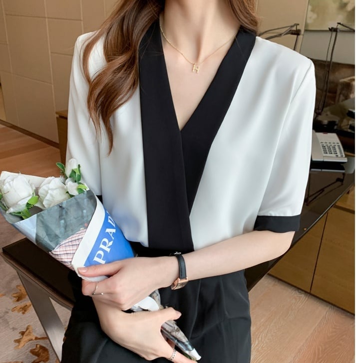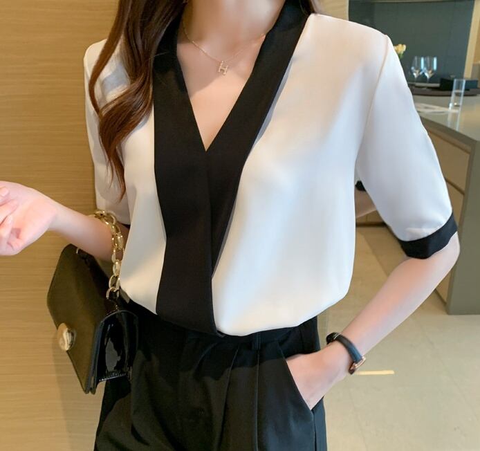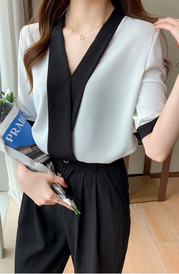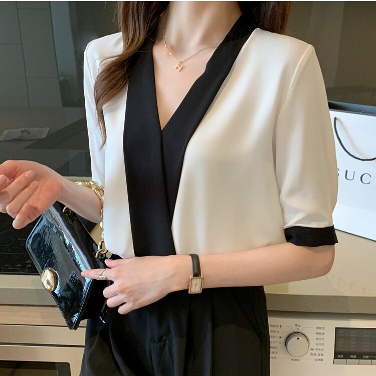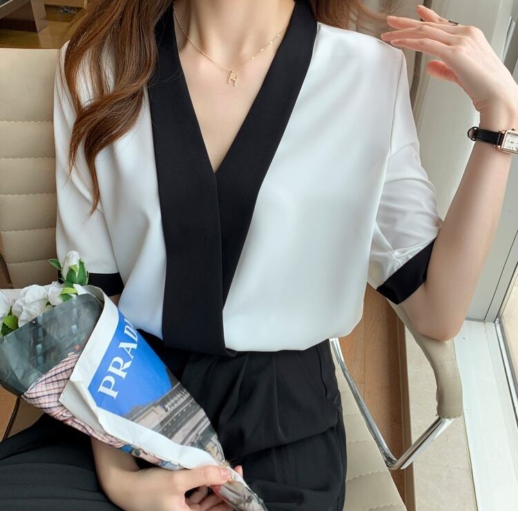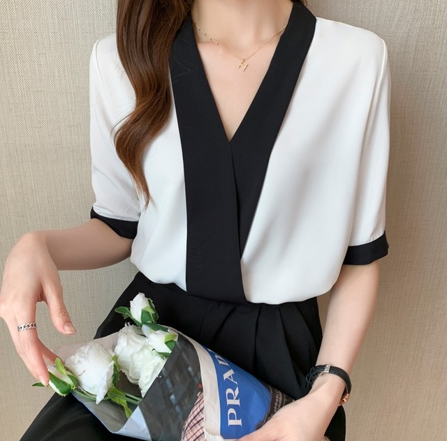 トップス シャツ ブラウス ミディアム丈 袖あり 半袖 Vネック カシュクール 襟なし ワイド 透け感 薄手 大人可愛い きれいめ シンプル カジュアル 大人 上品 お洒落 大人女子 こなれ感 クール セクシー エレガント 主役級 抜け感 無地 春 夏 秋 20代 30代 40代 ママ 通勤 学生 通学 デート お出かけ 女子会 休日 旅行 着回し 普段使い 重ね着 オルチャン 楽ちん モテ 体系カバー 定番 トレンド 流行 インスタ映え S M L XL 2XL ホワイト バイカラー