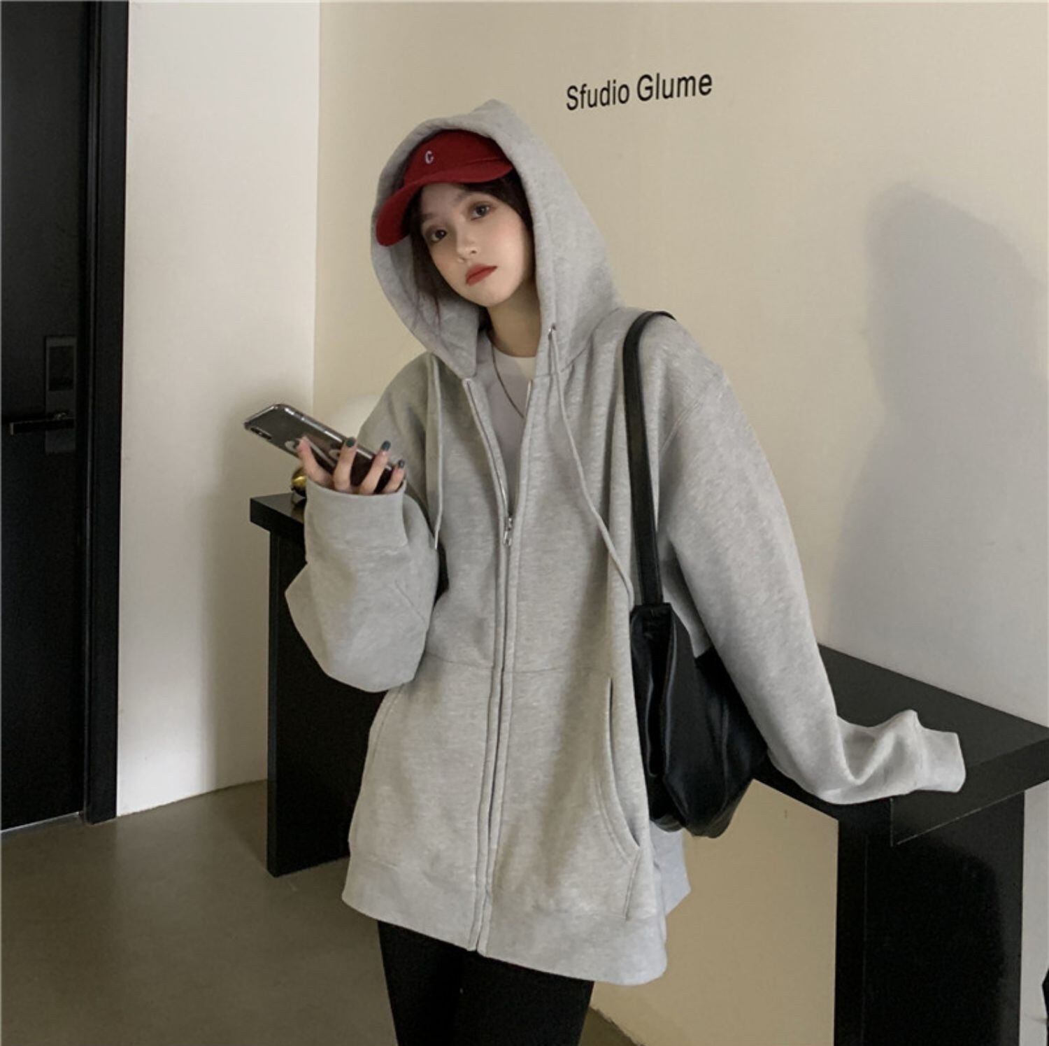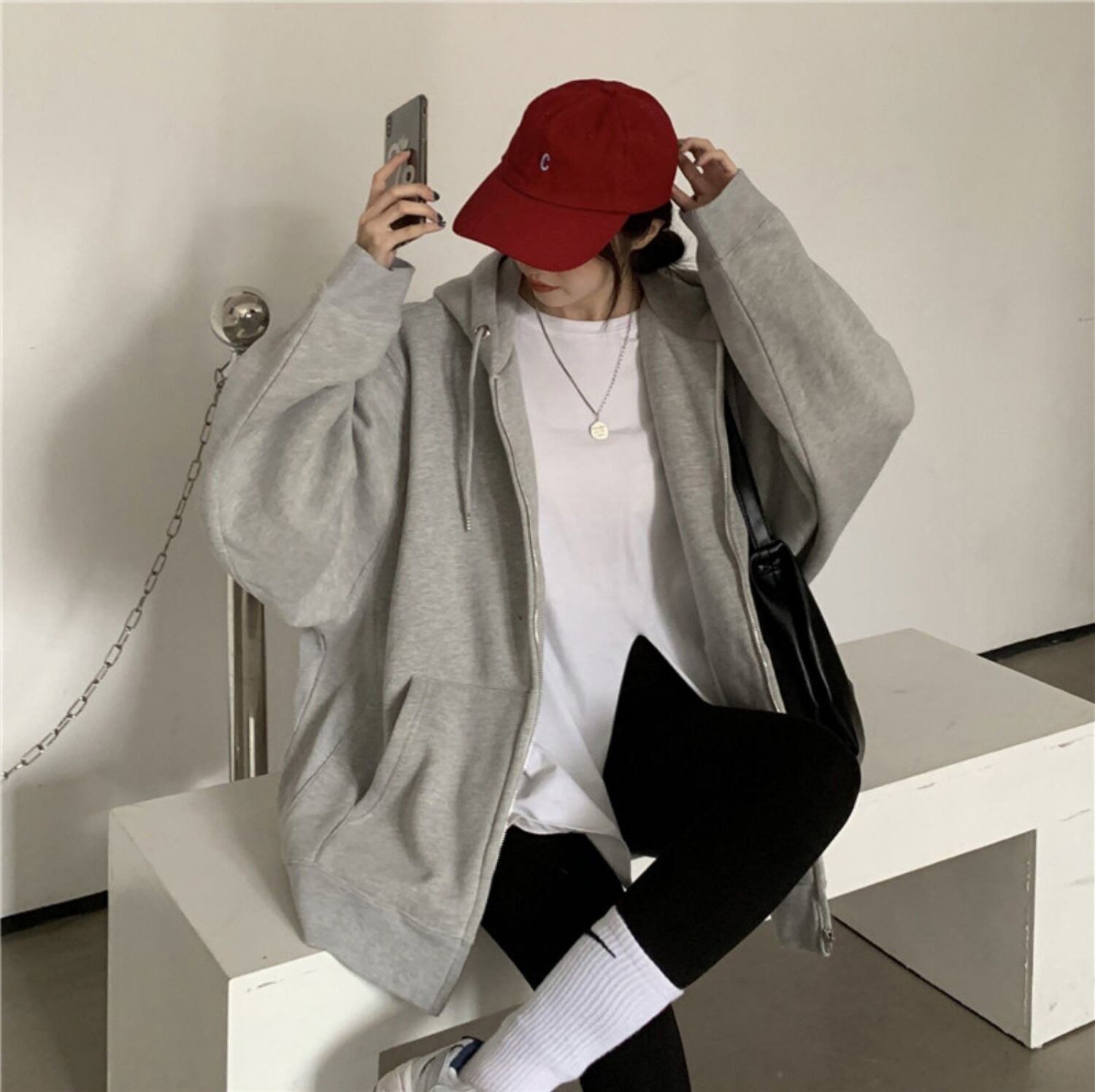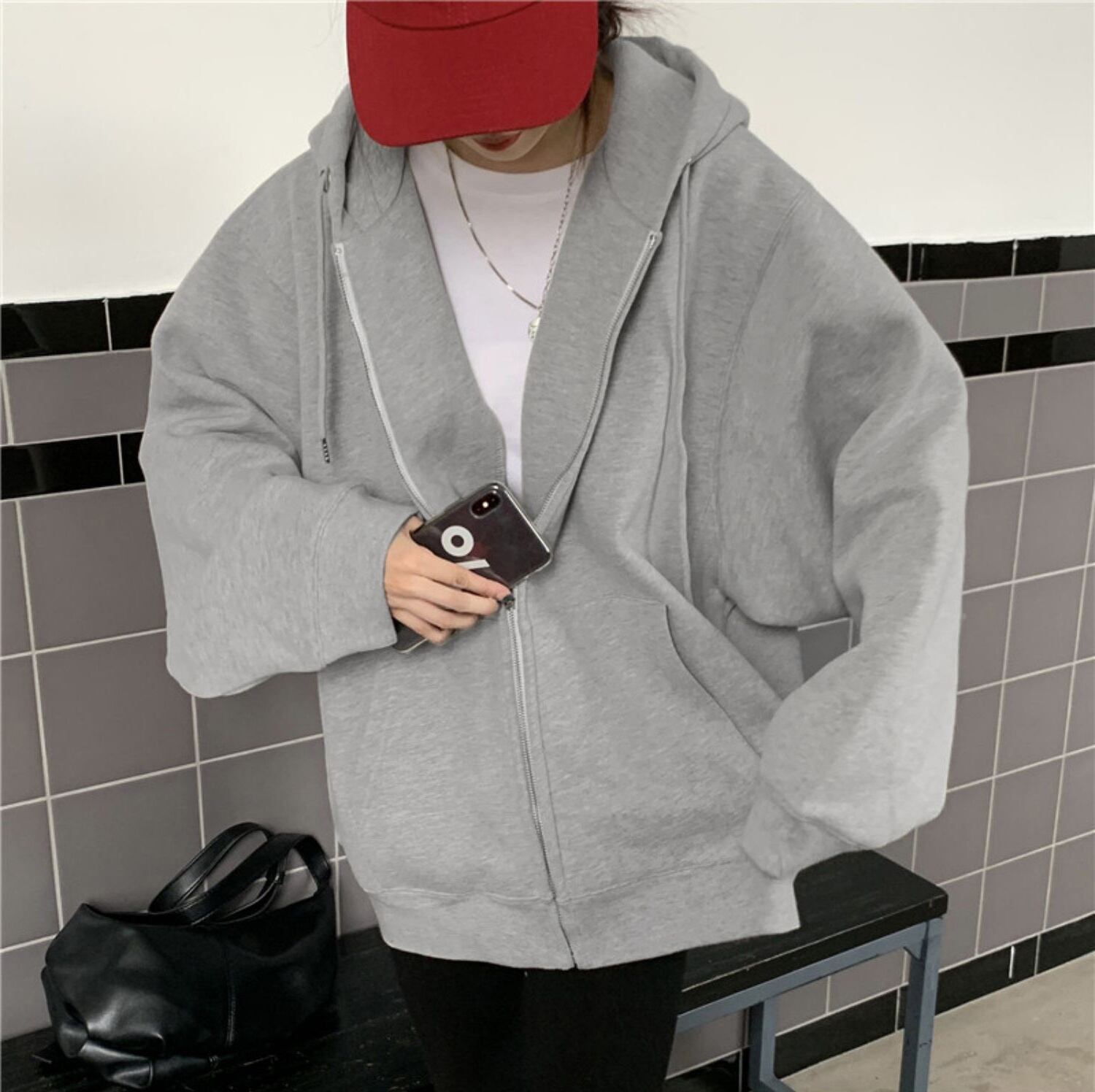 オーバーシルエットでルーズに着こなせるフルジップアップパーカー。