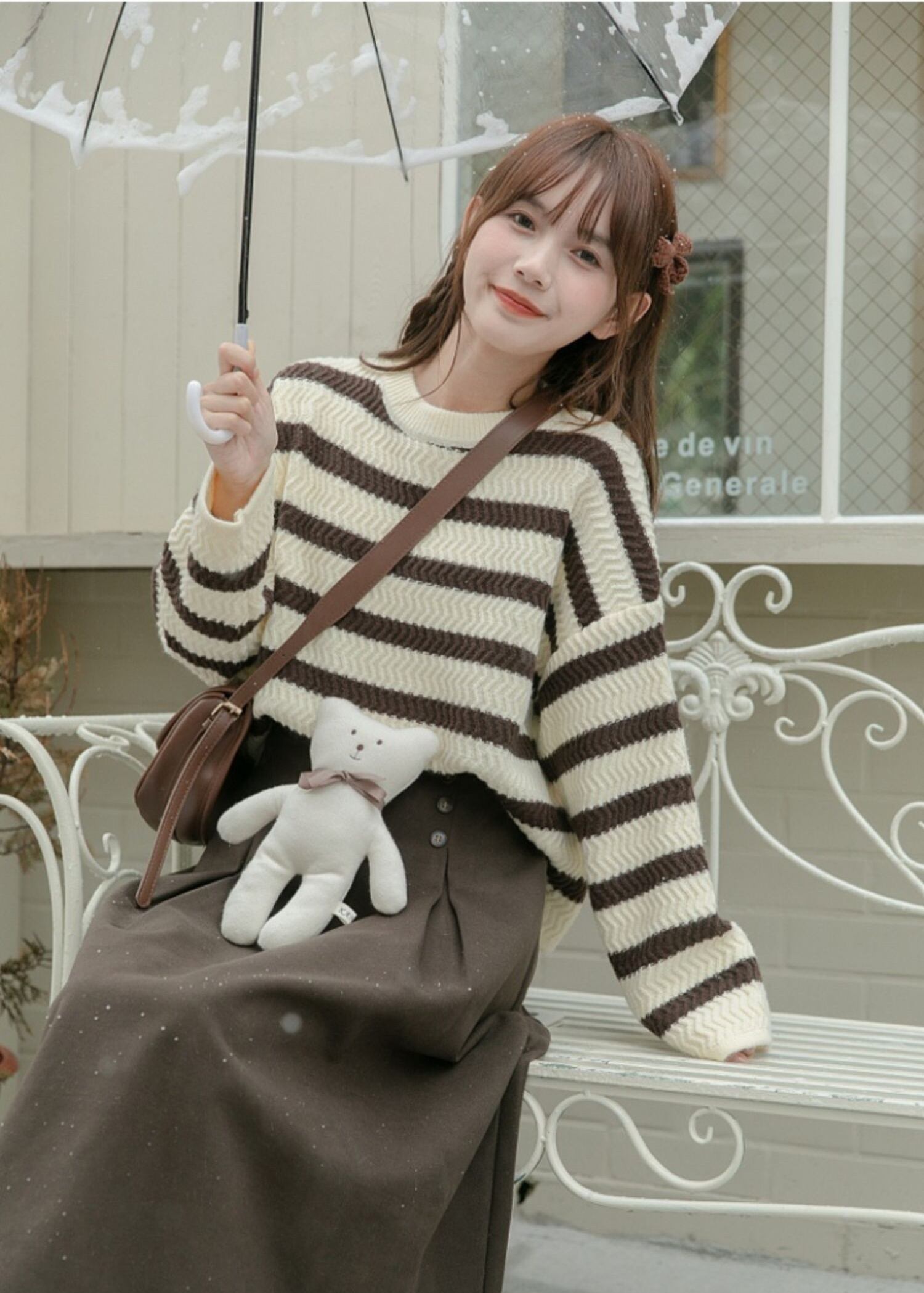立体感のある生地に淡い色合いのボーダー柄が可愛いニットトップス。