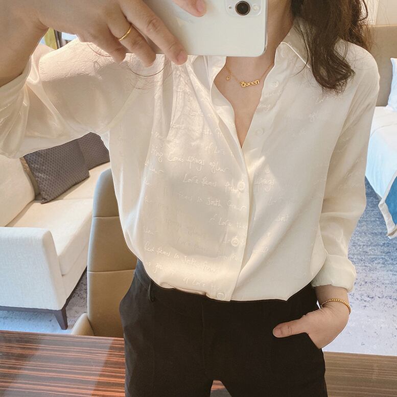 シャツ トップス ワントーンロゴシャツ レディース ブラウス ロゴ 襟付き 長袖 ワントーン 白 ホワイト ハリ感 オシャレ シンプル きちんと感 可愛い キレイめ 上品 フェミニン モード シック 知的 ハンサム マニッシュ カジュアル 春 夏 秋 冬 おでかけ シーズンレス デイリー 仕事 オンオフ兼用 オケージョン 公園コーデ アウトドア 普段着 定番 ベーシック 王道 万能 機能性 ミニマム スマート コンパクト 細見え スタイルアップ ゆったり 体型カバー インスタ映え エレガント オフィス