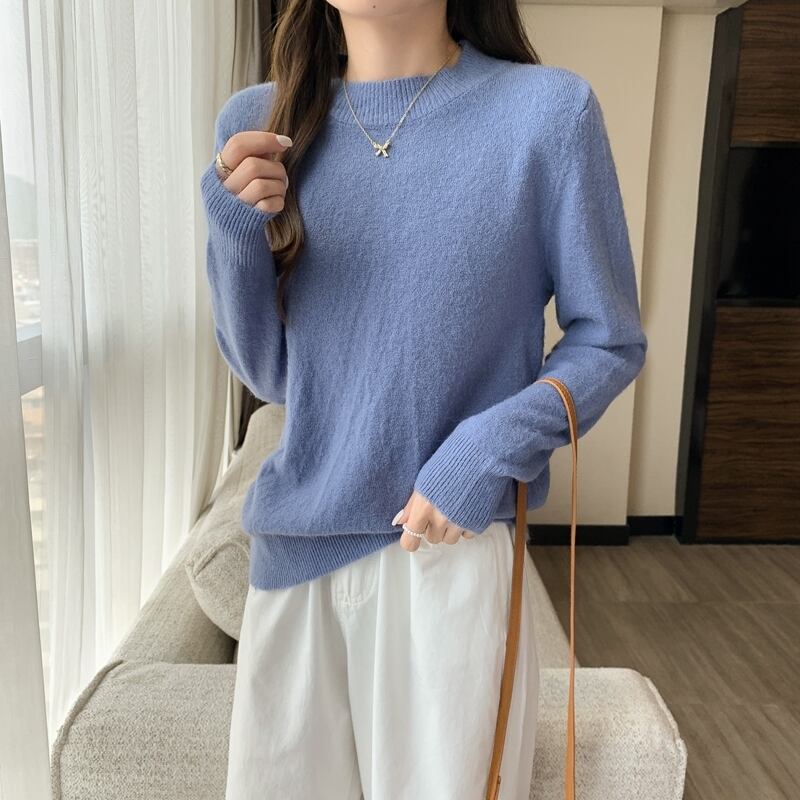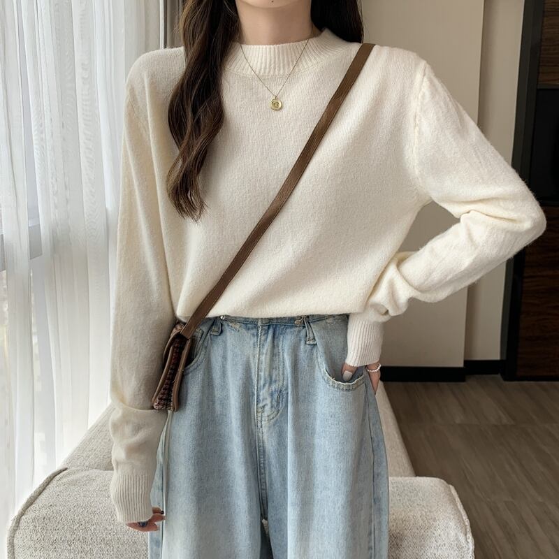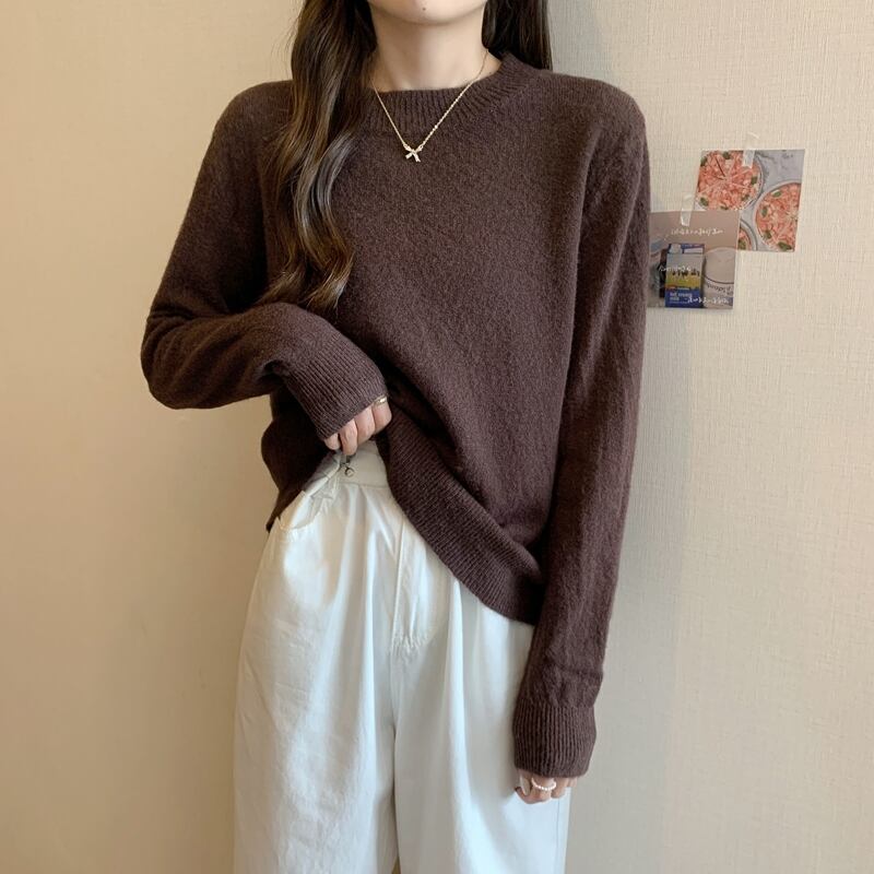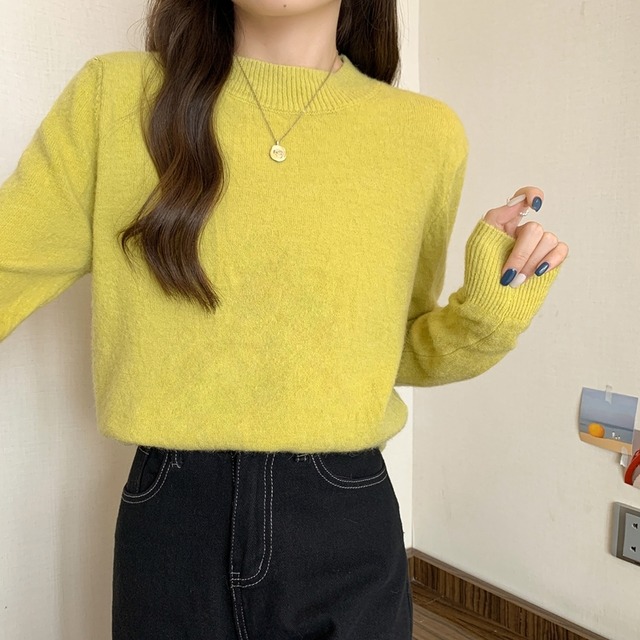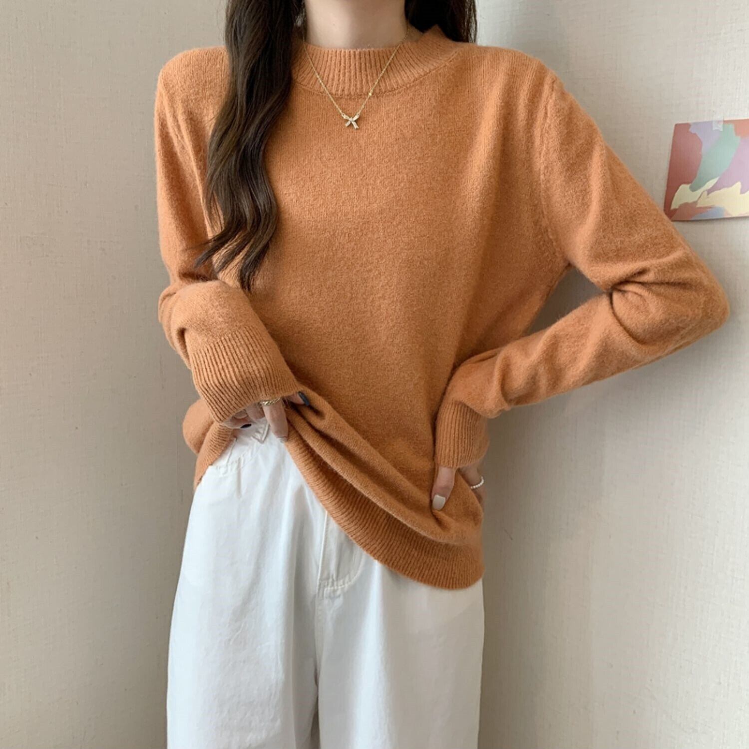 ほどよくゆったりのシンプルなデザインでボトムを選ばずコーディネートしやすいニットトップス。