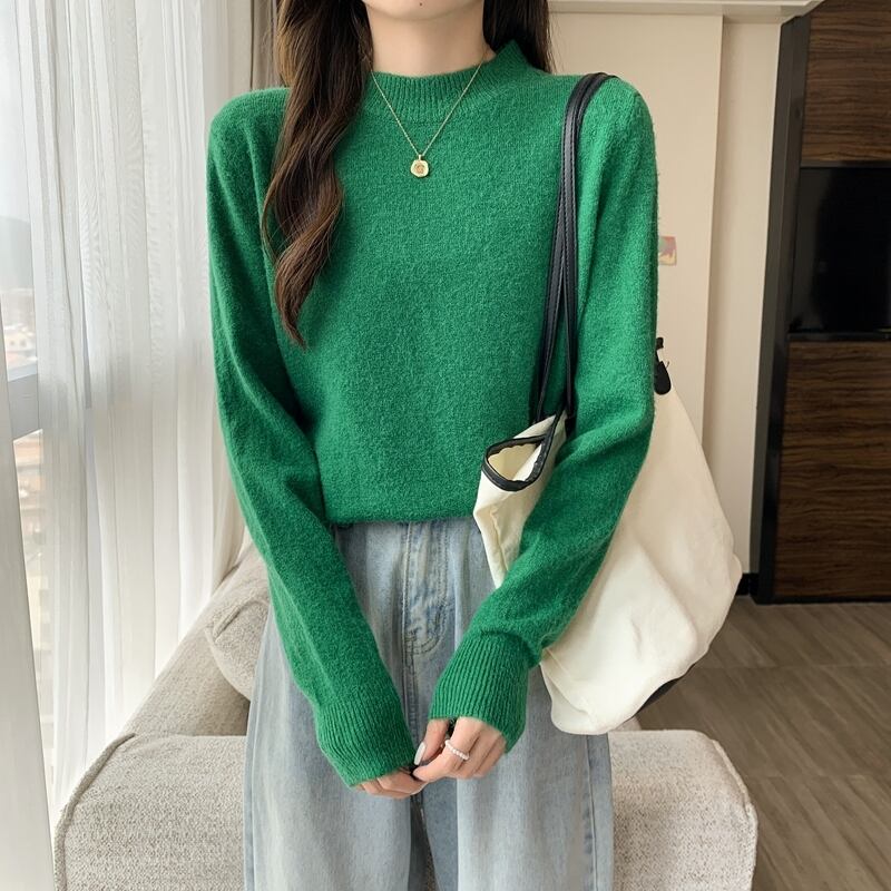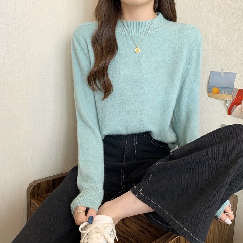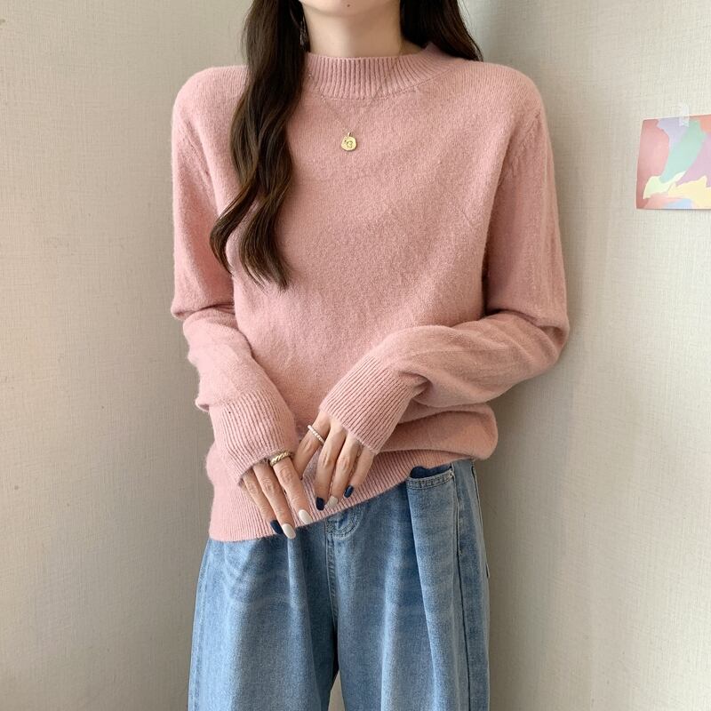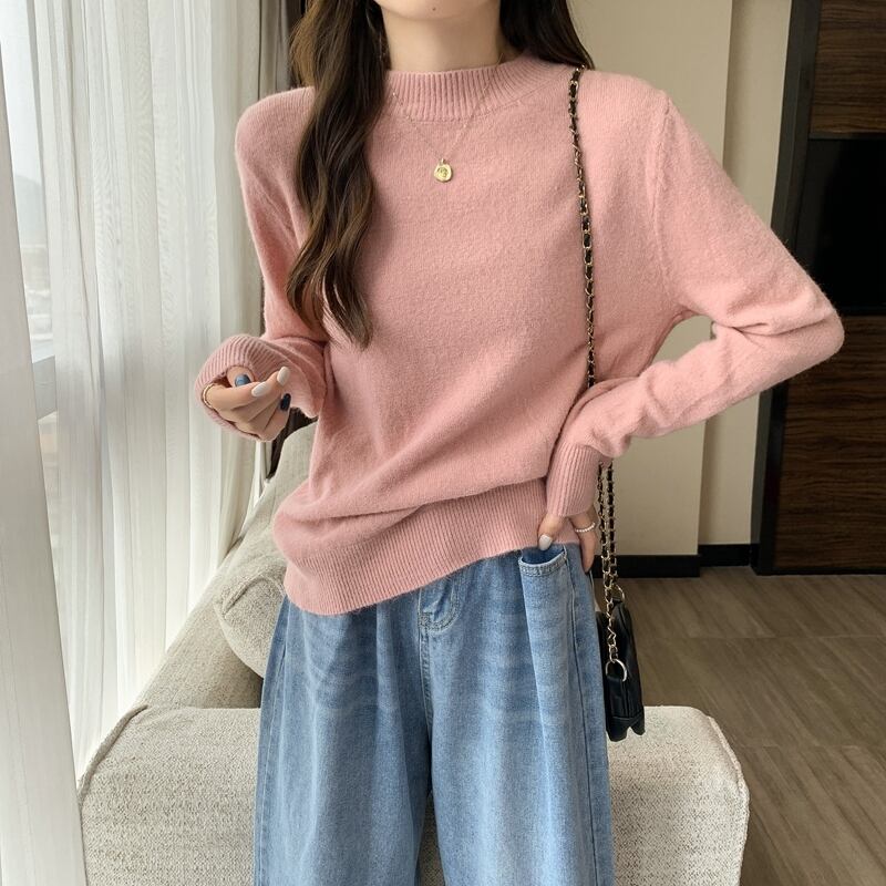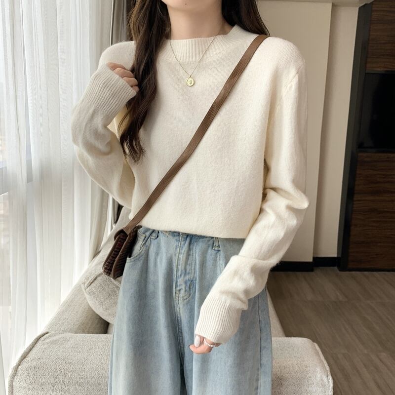 ほどよくゆったりのシンプルなデザインでボトムを選ばずコーディネートしやすいニットトップス。