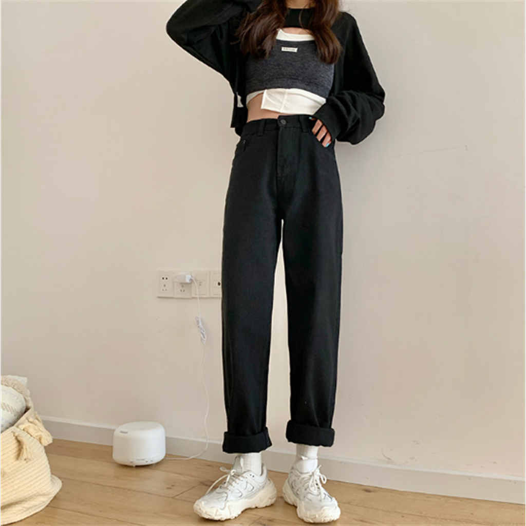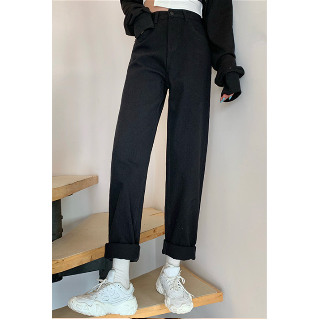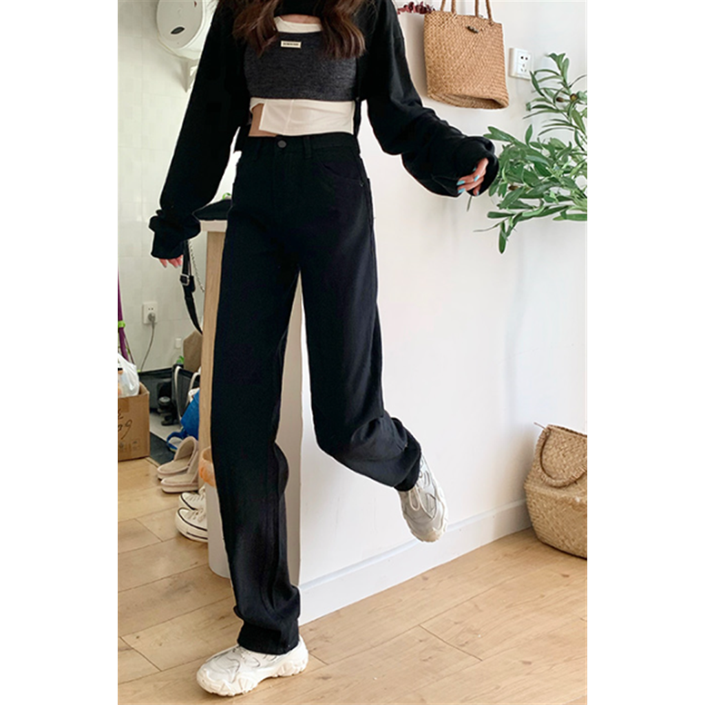 ハイウエストで形が美しい細見えストレートパンツ。オフホワイト(ベージュ)とブラックの2色展開です。普段着からくるぶしを折って着てもかわいいです。