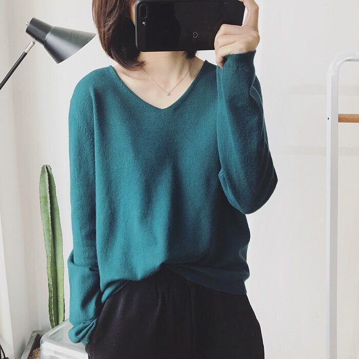 Vネックでスッキリ感があり様々なボトムスと合う1着です