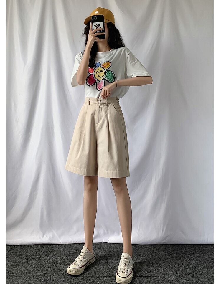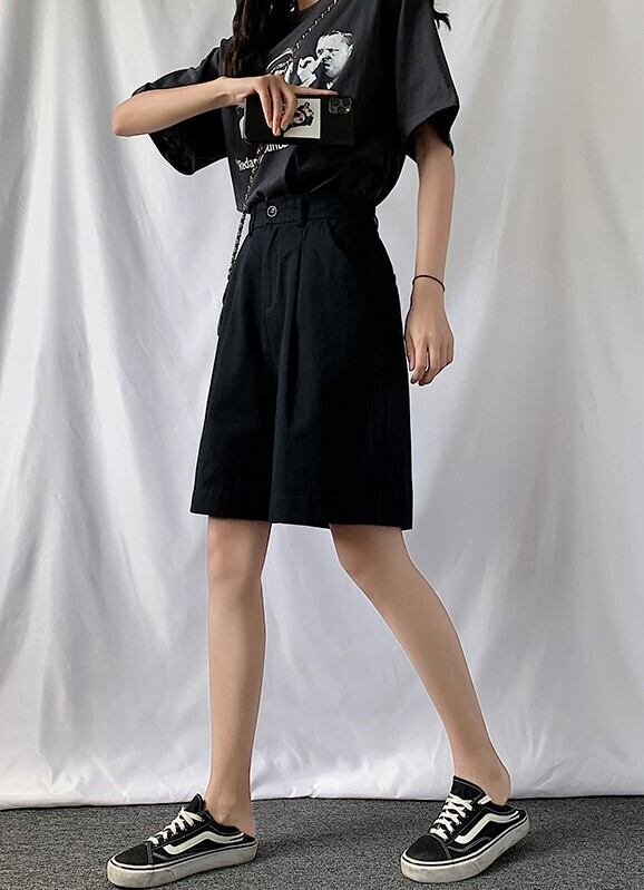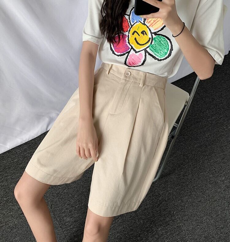ハイウエストデザインのワンタック入りハーフパンツ。