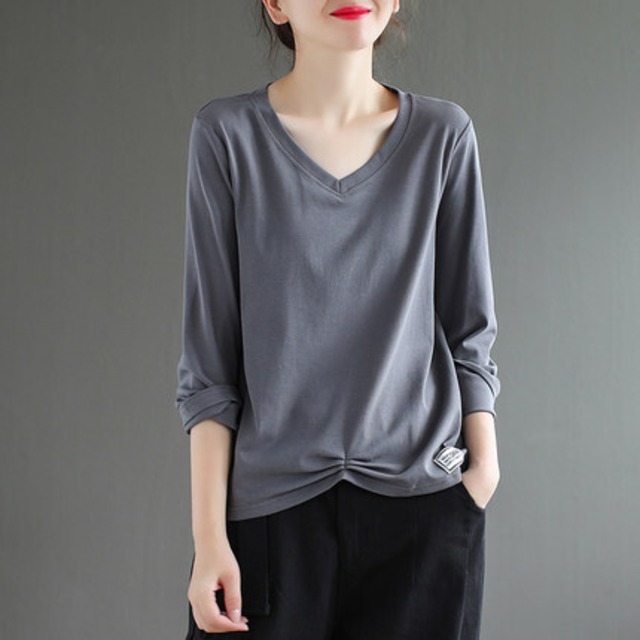 トップス デート Tシャツ カットソー 袖あり 長袖 Vネック かわいい 大人可愛い きれいめ シンプル カジュアル 大人 上品 おしゃれ お洒落 主役級 存在感 春 秋 10代 20代 30代 レディース 女性用 OL 学生 デート お出かけ 公園デビュー 女子会 休日 イベント 旅行 着回し 普段使い ファッション コーデ 楽ちん モテ トレンド 流行 インスタ映え フリーサイズ ゆったり ゆる 白 ホワイト 黒 ブラック 茶色 ブラウン 灰色 グレー
