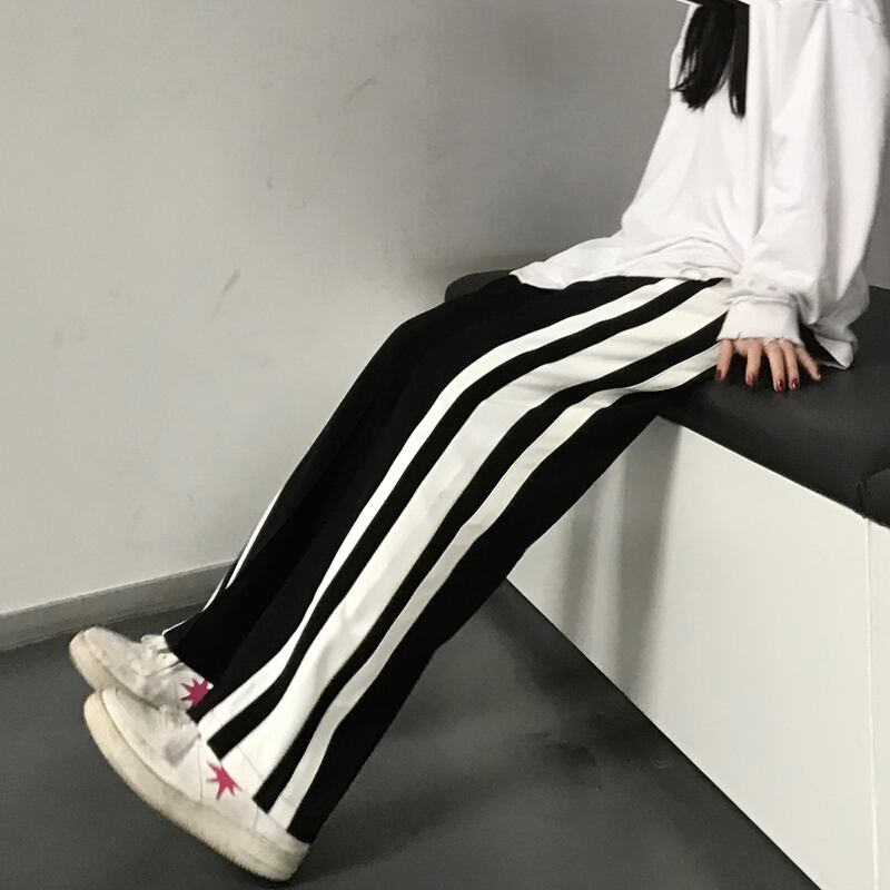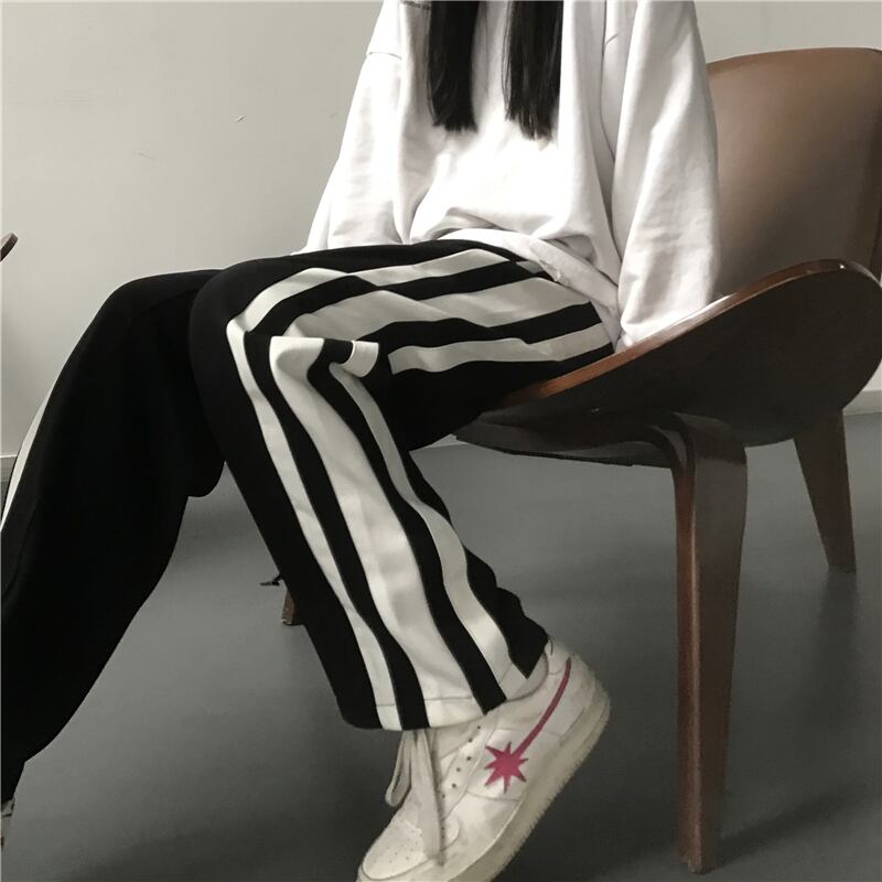 ストリートファッションによく合うサイドラインのストレートパンツ。