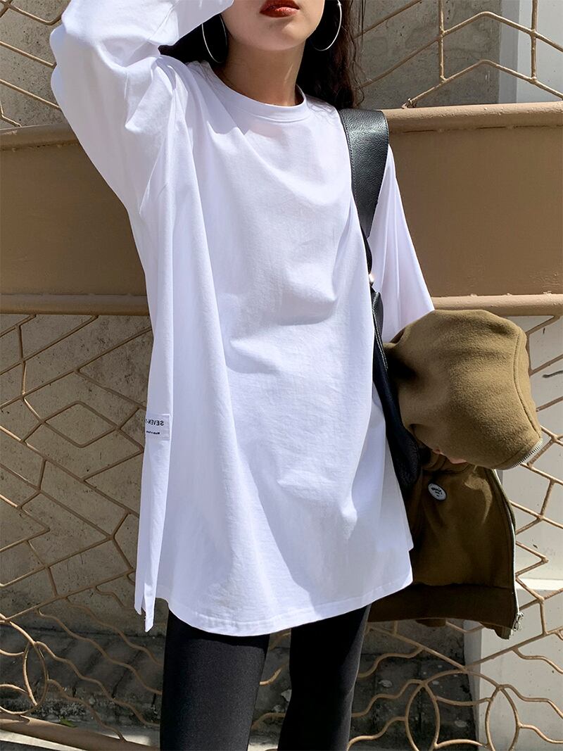 トップス デート Tシャツ カットソー 袖あり 長袖 かわいい 大人可愛い きれいめ シンプル カジュアル 大人 上品 おしゃれ お洒落 主役級 存在感 春 秋 10代 20代 30代 レディース 女性用 OL 学生 デート お出かけ 公園デビュー 女子会 休日 イベント 旅行 着回し 普段使い ファッション コーデ 楽ちん モテ トレンド 流行 インスタ映え S M L XL 2XL 3XL 4XL ゆったり ゆる 白 ホワイト