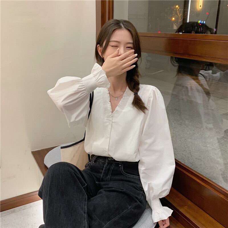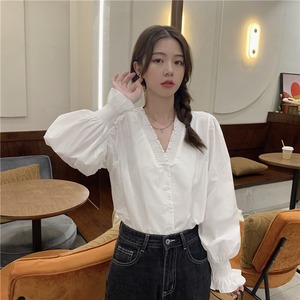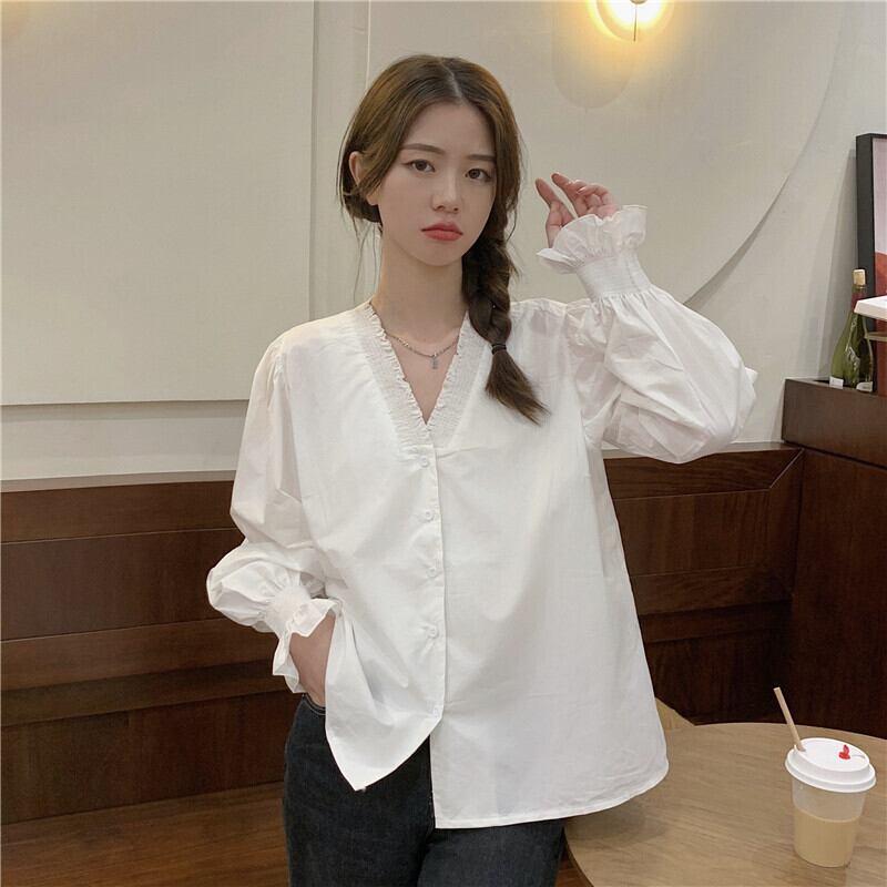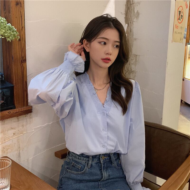 トップス デート シャツ ブラウス カットソー 袖あり 長袖 Vネック かわいい 大人可愛い きれいめ シンプル カジュアル 大人 上品 おしゃれ お洒落 主役級 存在感 春 秋 10代 20代 30代 レディース 女性用 OL 学生 デート お出かけ 公園デビュー 女子会 休日 イベント 旅行 着回し 普段使い ファッション コーデ 楽ちん モテ トレンド 流行 インスタ映え M L XL 2XL 白 ホワイト 青 ブルー