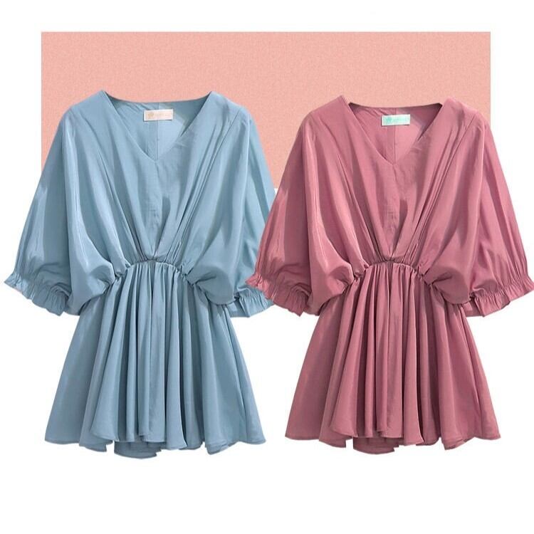 トップス ブラウス カットソー 袖あり 5分袖 五分袖 ボリューム袖 パフスリーブ フレアスリーブ Vネック フレア セミフレア Aライン ふわふわ 薄手 かわいい 大人可愛い きれいめ シンプル 大人 上品 おしゃれ お洒落 大人女子 こなれ感 ラフ キュート とろみ感 無地 春 夏 10代 20代 30代 40代 50代 60代 レディース デート お出かけ 公園デビュー 女子会 休日 リゾート 旅行 海 ガーデン 着回し 普段使い 韓国 韓国系 オルチャン 楽ちん モテ 大きいサイズ くすみカラー