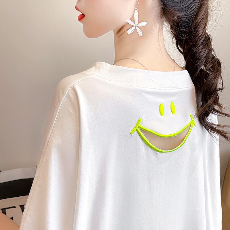 胸元はVネックになっており、背中にはにこちゃんマークの穴あきデザインで