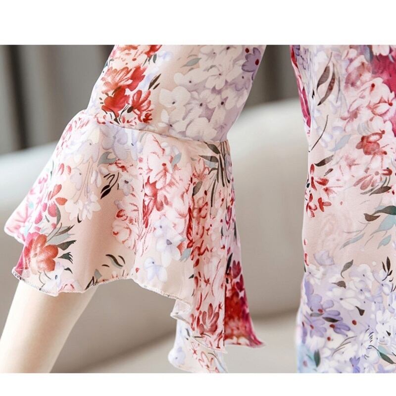 フレアスリーブとゆらゆらとゆれるシフォン素材が華やかなアイテム