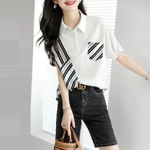 シャツ トップス ストライプハーフボタンシャツ レディース ハーフボタンシャツ ストライプ柄 半袖 襟付き ポロシャツ ブラウス ロゴ アシメシャツ 切り替え 白 黒 ホワイト ブラック オシャレ シンプル きちんと感 可愛い キレイめ 上品 フェミニン シック 知的 ハンサム マニッシュ カジュアル 春 夏 秋 冬 おでかけ シーズンレス デイリー 仕事 オンオフ兼用 普段着 王道 万能 機能性 スマート コンパクト 細見え 新鮮 上級者 主役級 鮮度アップ トレンド ゆったり 体型カバー インスタ映え