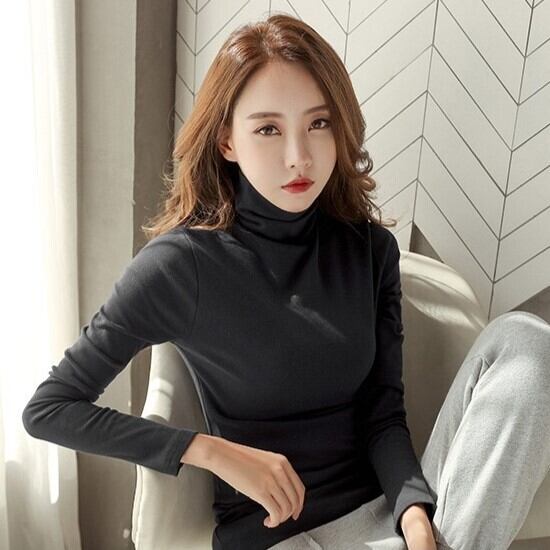 フィット感のあるハイネックの長袖トップスです