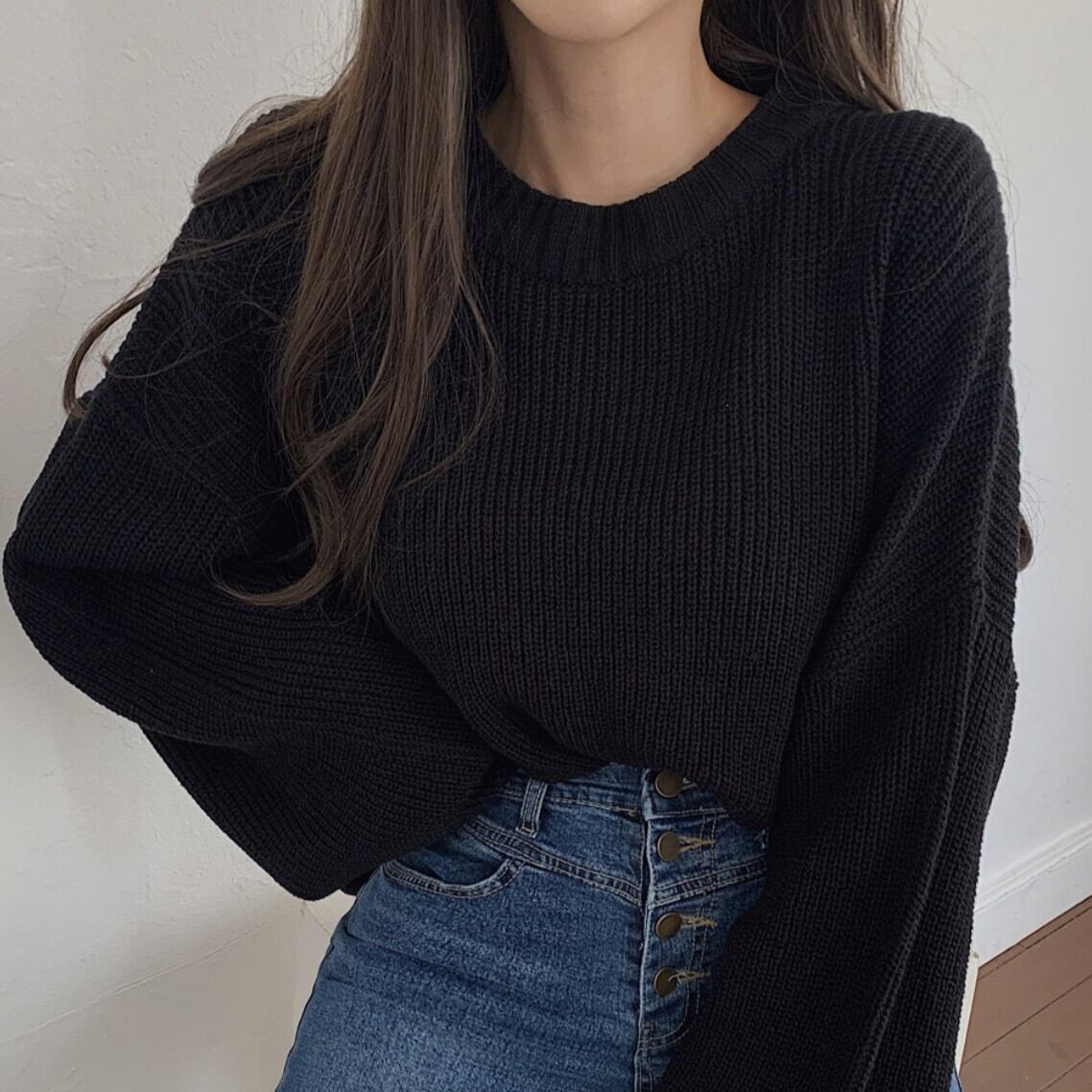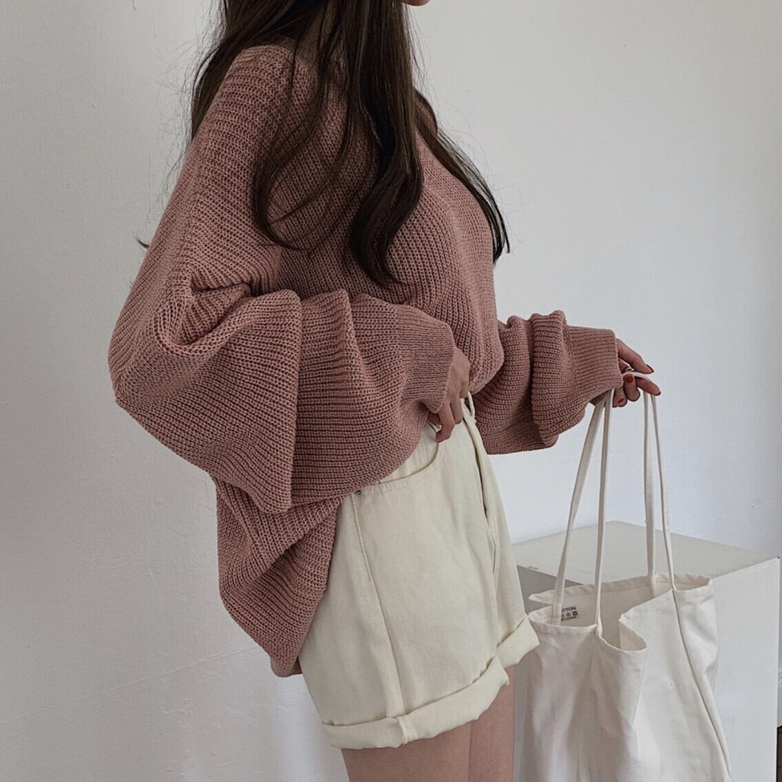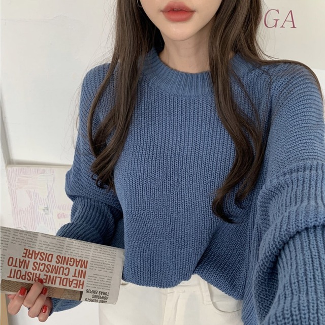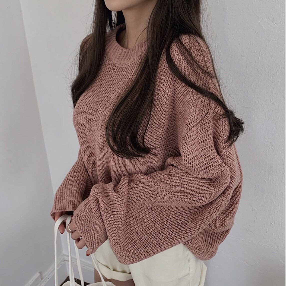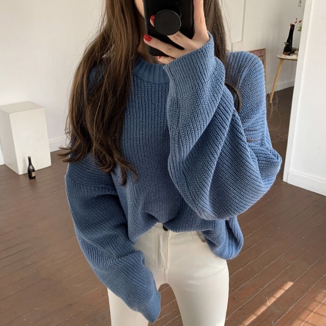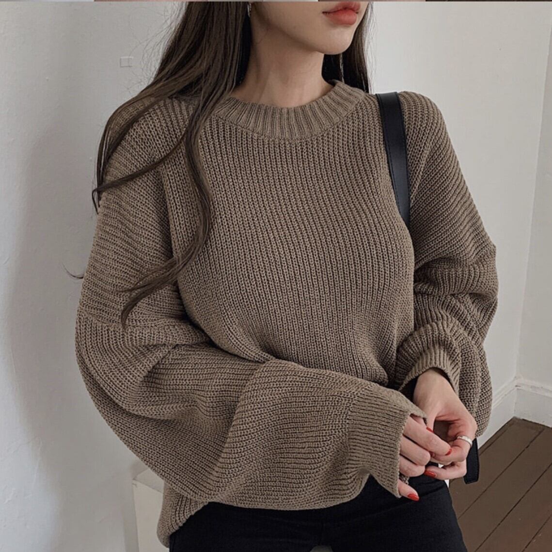 ざっくり編み目がお洒落で袖のボリューム感もかわいい1枚です