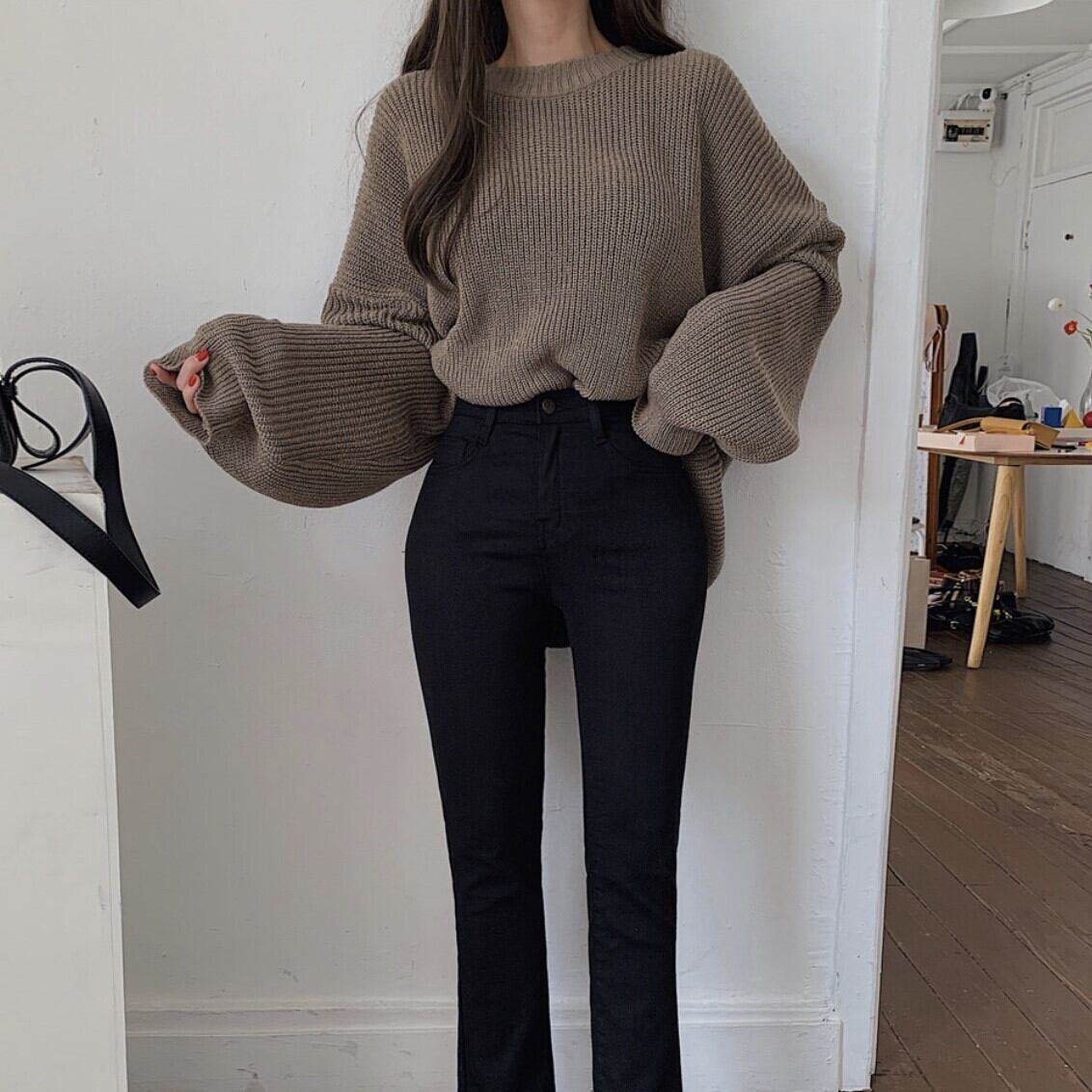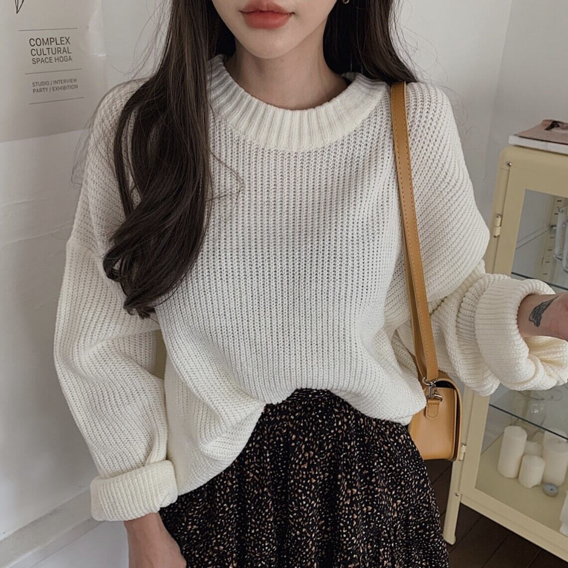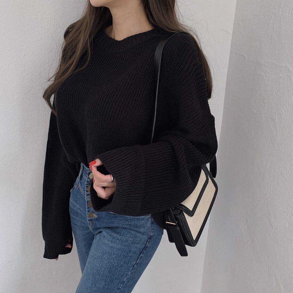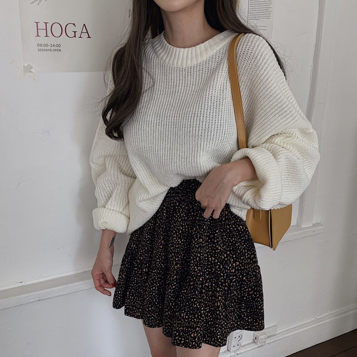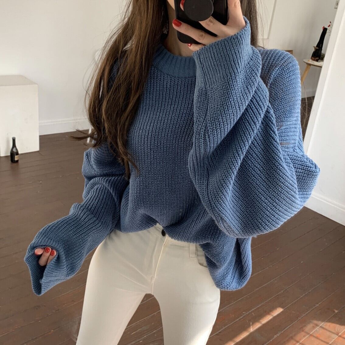 ざっくり編み目がお洒落で袖のボリューム感もかわいい1枚です