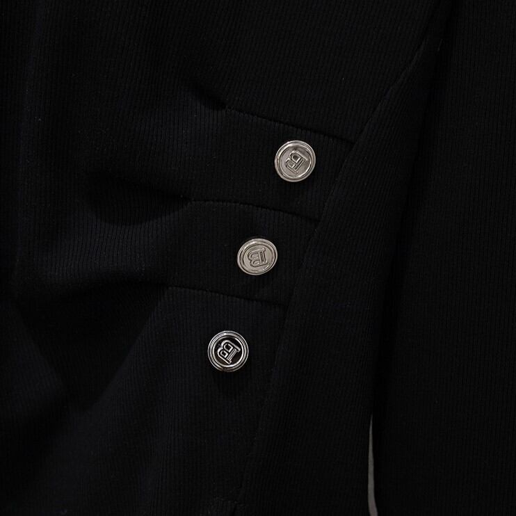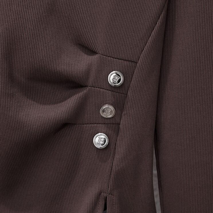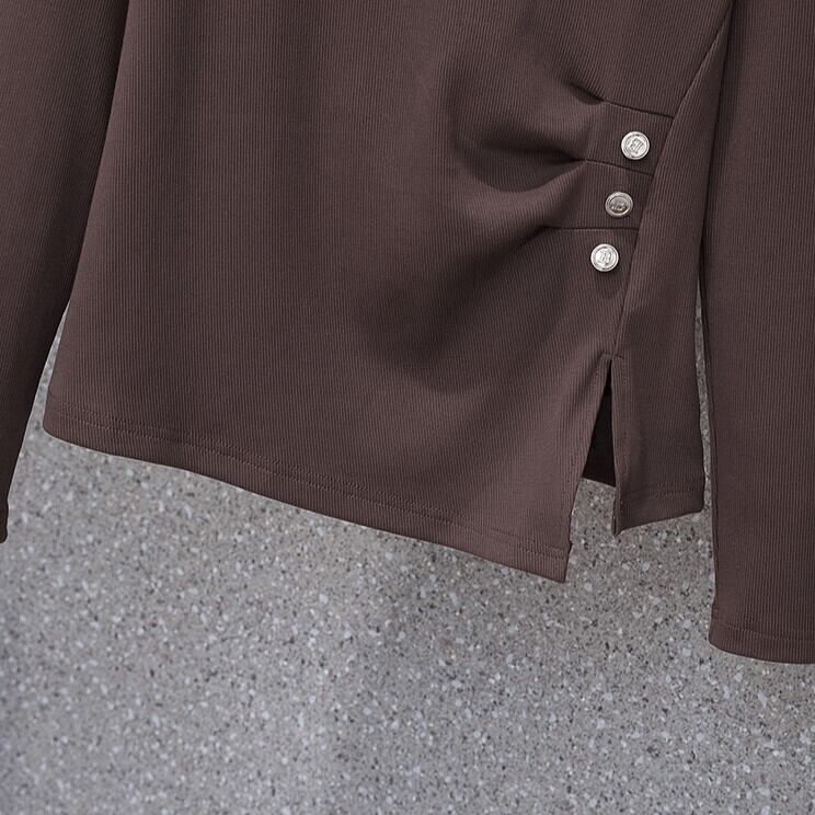 ギャザーとボタンが上品なスタイルを仕上げてくれる1着です