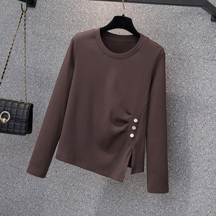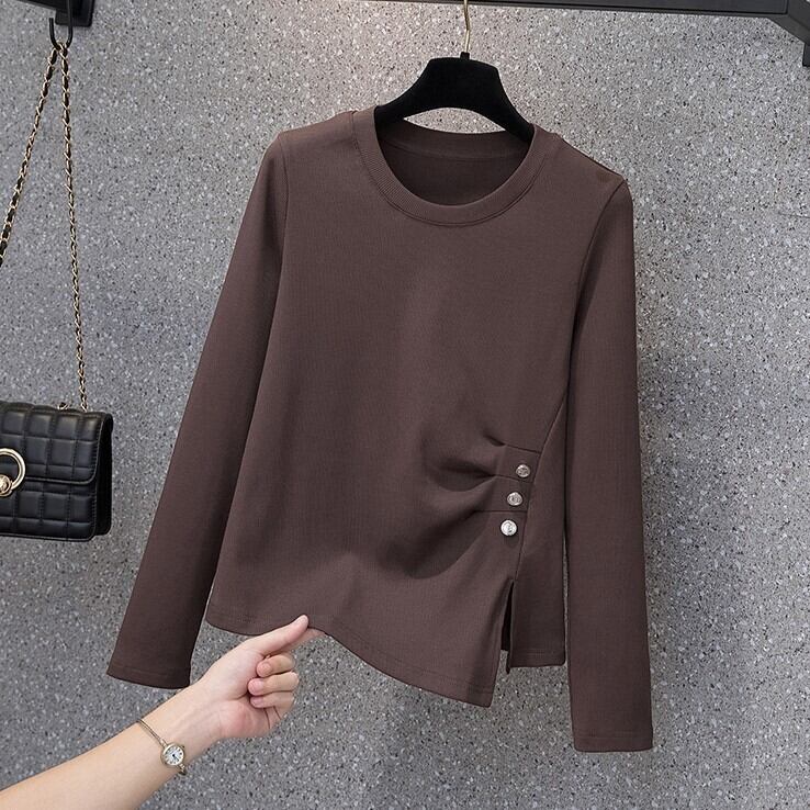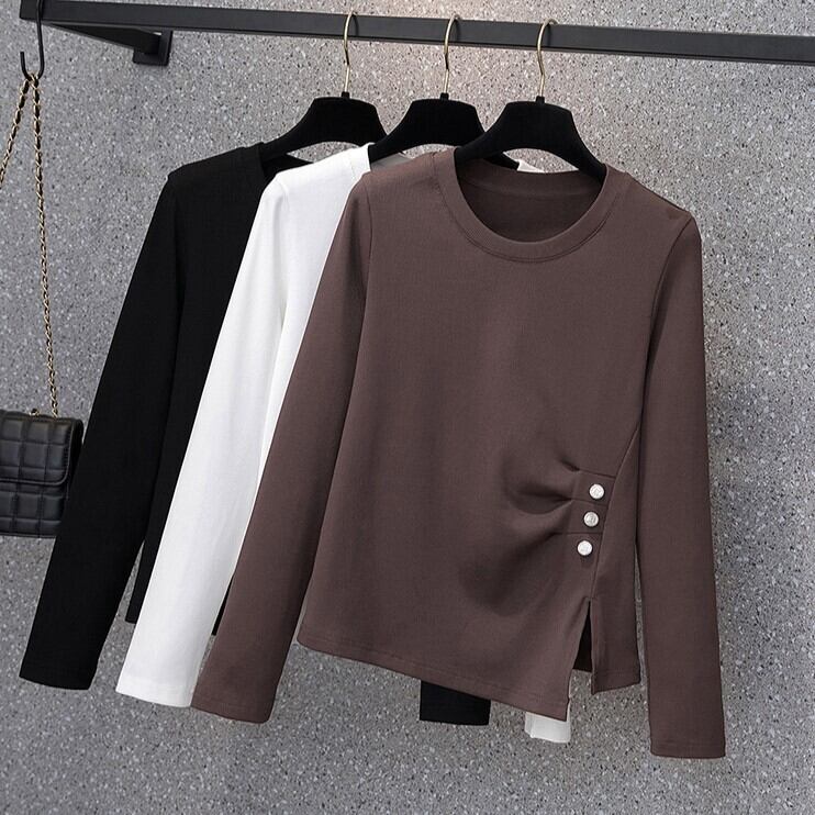 トップス カットソー 袖あり 長袖 ラウンドネック アシンメトリー スリット 薄手 かわいい 大人可愛い きれいめ 大人 上品 おしゃれ お洒落 エキゾチック 大人可愛い 大人女子 こなれ感 ラブリー キュート ガーリー クール モード系 エレガント 存在感 とろみ感 抜け感 入学式 入園式 卒業式 卒園式 10代 20代 30代 40代 レディース 女性用 OL 通勤 学生 デート 女子会 旅行 ホテル レストラン 普段使い 楽ちん モテ L XL 2XL 3XL 4XL ホワイト ブラック ブラウン