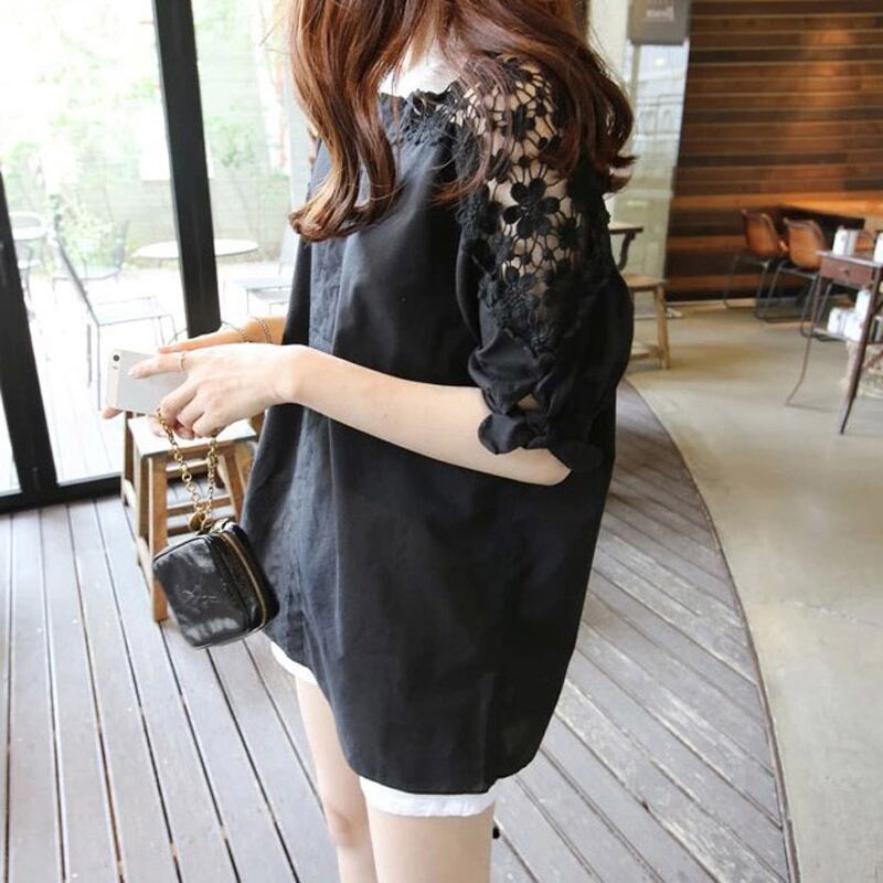 ショルダー部分がレースになっていて、透け感がおしゃれなブラウス。