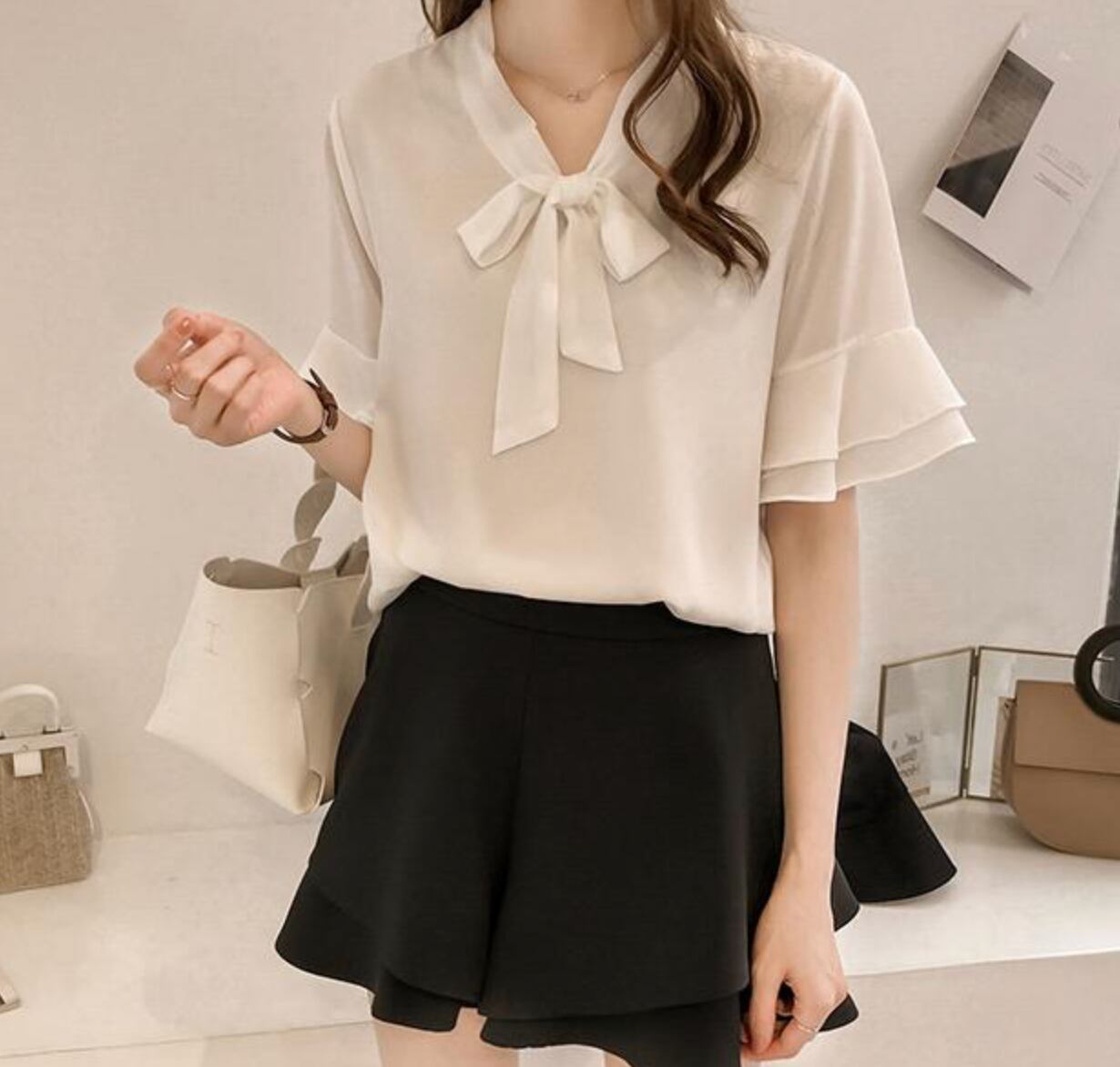 トップス シャツ ブラウス 白シャツ 白トップス 袖あり 5分袖 五分袖 フレアスリーブ Vネック 襟なし ワイド シフォン リボン 透け感 かわいい 大人可愛い きれいめ シンプル 大人 上品 おしゃれ お洒落 大人可愛い 大人女子 こなれ感 存在感 とろみ感 抜け感 無地 春 夏 10代 20代 30代 40代 レディース 女性用 オフィス OL 通勤 学生 通学 デート お出かけ 女子会 お泊まり パーティー イベント ホテル レストラン 着回し 普段使い M L XL 2XL 3XL 4XL