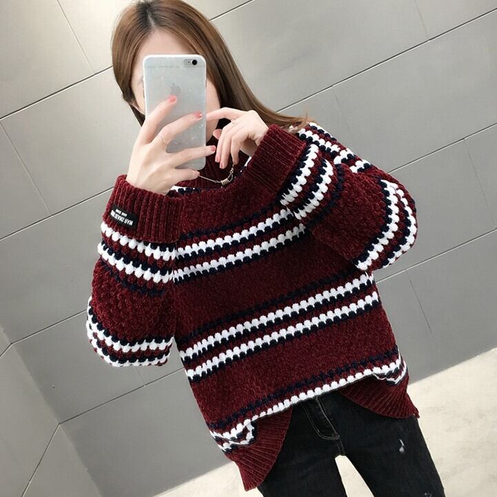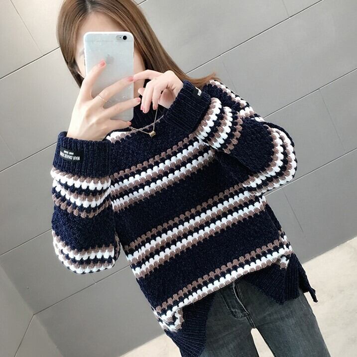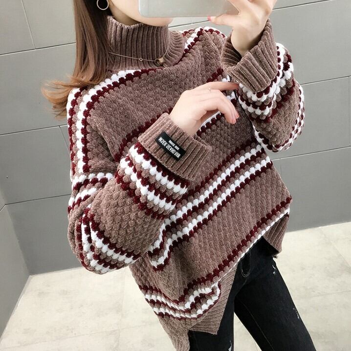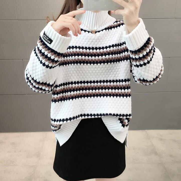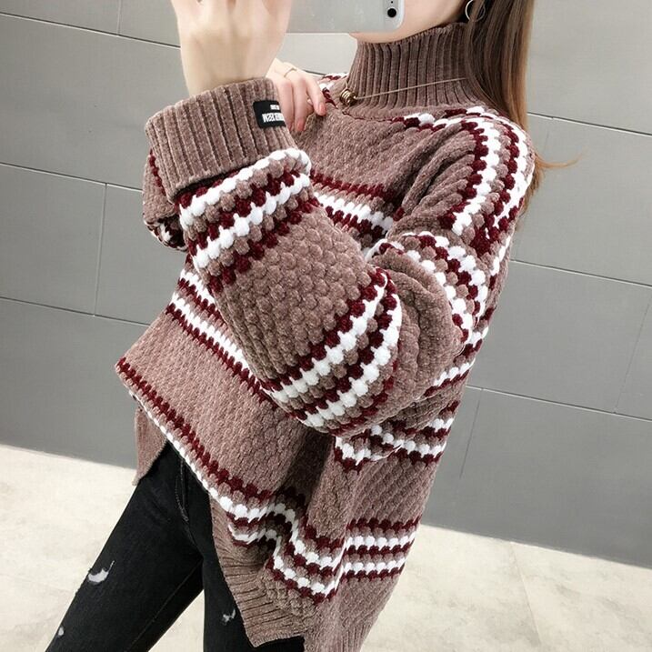 もこもことした編み目と模様のかわい長袖セーターです