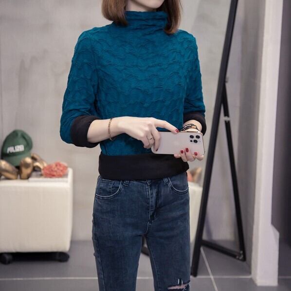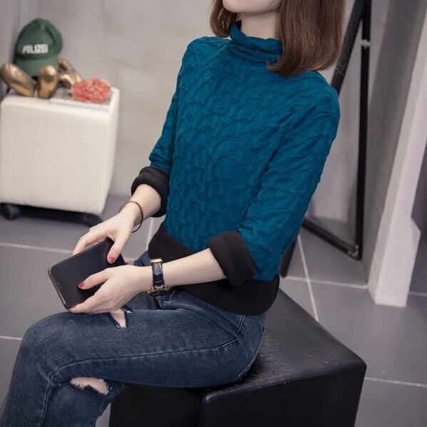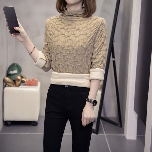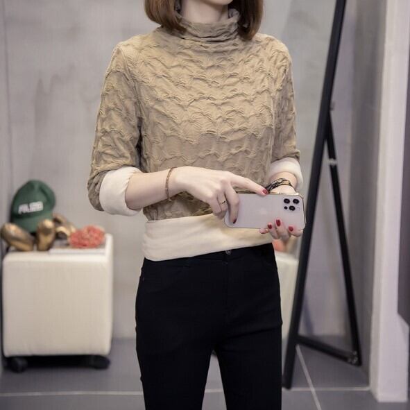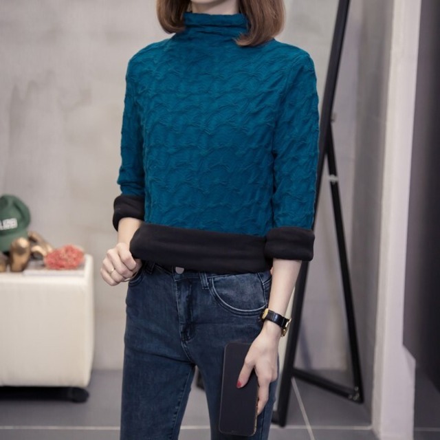 生地に立体感がありお洒落なハイネックトップスです
