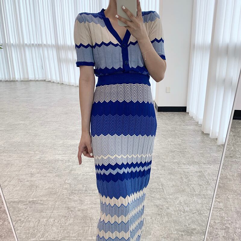 トップス スカート セットアップ デート カットソー ミモレ ミモレ丈 袖あり 半袖 Vネック かわいい 大人可愛い きれいめ シンプル カジュアル 大人 上品 おしゃれ お洒落 主役級 存在感 夏 10代 20代 30代 レディース 女性用 OL 学生 デート お出かけ 公園デビュー 女子会 休日 イベント 旅行 着回し 普段使い ファッション コーデ 楽ちん モテ トレンド 流行 インスタ映え フリーサイズ 青 ブルー