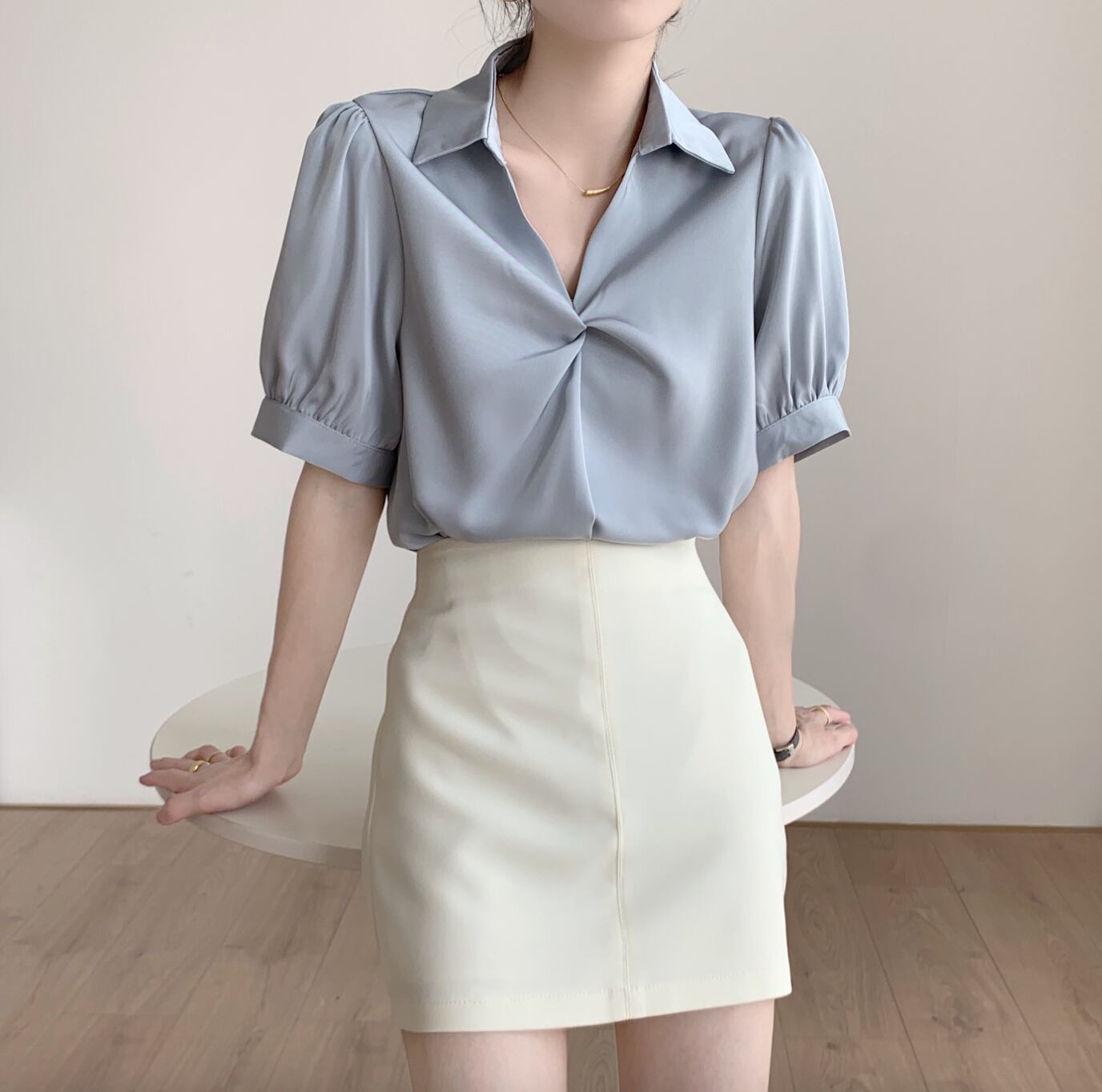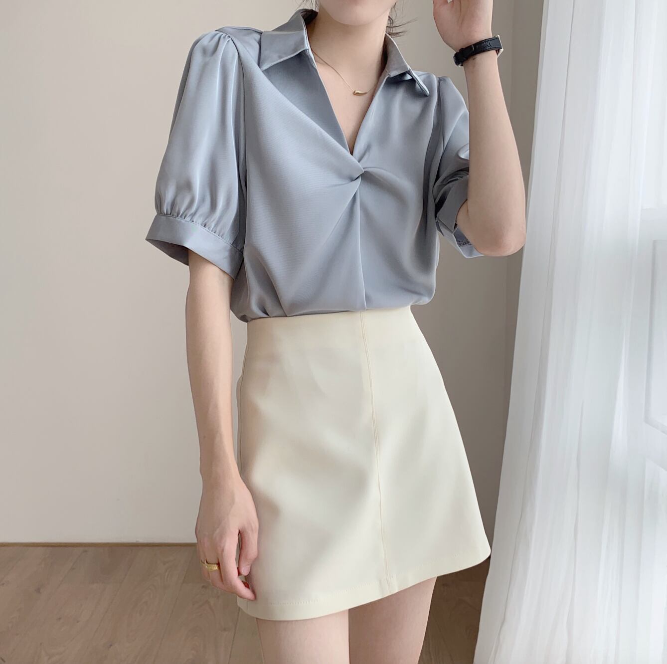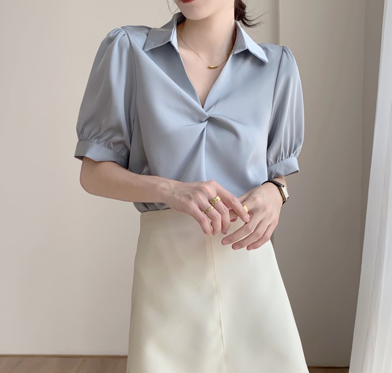トップス シャツ ブラウス 白シャツ 白トップス 袖あり 半袖 5分袖 五分袖 パフスリーブ バルーンスリーブ ランタンスリーブ Vネック 襟付き シャツ襟 ストレート シフォン 大人可愛い きれいめ シンプル 大人 上品 おしゃれ お洒落 大人女子 こなれ感 エレガント とろみ感 抜け感 無地 春 夏 10代 20代 30代 40代 レディース 女性用 オフィス OL 通勤 学生 通学 デート お出かけ 女子会 休日 パーティー イベント ホテル レストラン 着回し 普段使い S M L XL 2XL