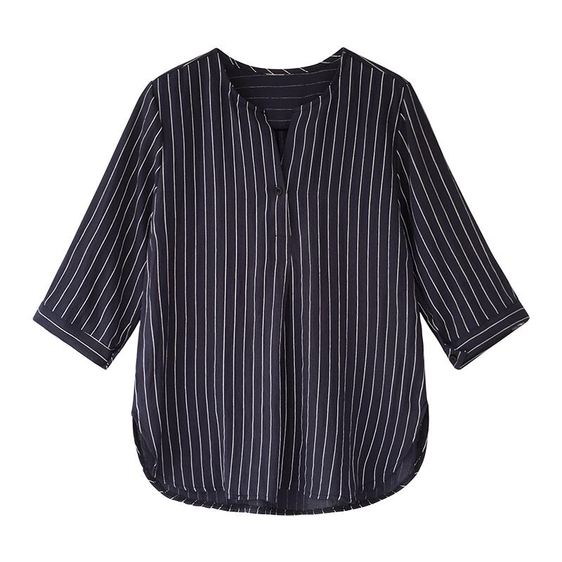 トップス シャツ ブラウス 袖あり 7分袖 七分袖 Vネック ノーカラー ストレート スリット サイドスリット きれいめ シンプル カジュアル 大人 上品 おしゃれ お洒落 こなれ感 ラフ 存在感 抜け感 ストライプ 春 夏 10代 20代 30代 40代 レディース 女性用 オフィス OL 通勤 学生 通学 デート お出かけ 女子会 休日 リゾート 旅行 ホテル レストラン 着回し 普段使い M L XL 2XL 3XL 4XL ホワイト グレー ピンク ネイビー