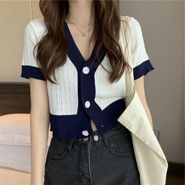 トップス ニットソー カーディガン ショート丈 袖あり 長袖 Vネック 襟なし 細身 前開き ケーブルニット 伸縮性 前ボタン ニット かわいい 大人可愛い きれいめ シンプル 大人 おしゃれ お洒落 大人可愛い 大人女子 こなれ感 主役級 存在感 無地 春 夏 10代 20代 30代 40代 レディース 女性用 学生 通学 デート お出かけ 女子会 お泊まり 休日 旅行 ホテル レストラン 着回し 普段使い 韓国系 S M L XL ホワイト ブラック パープル