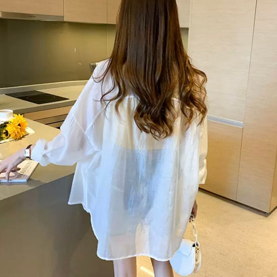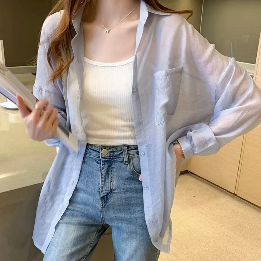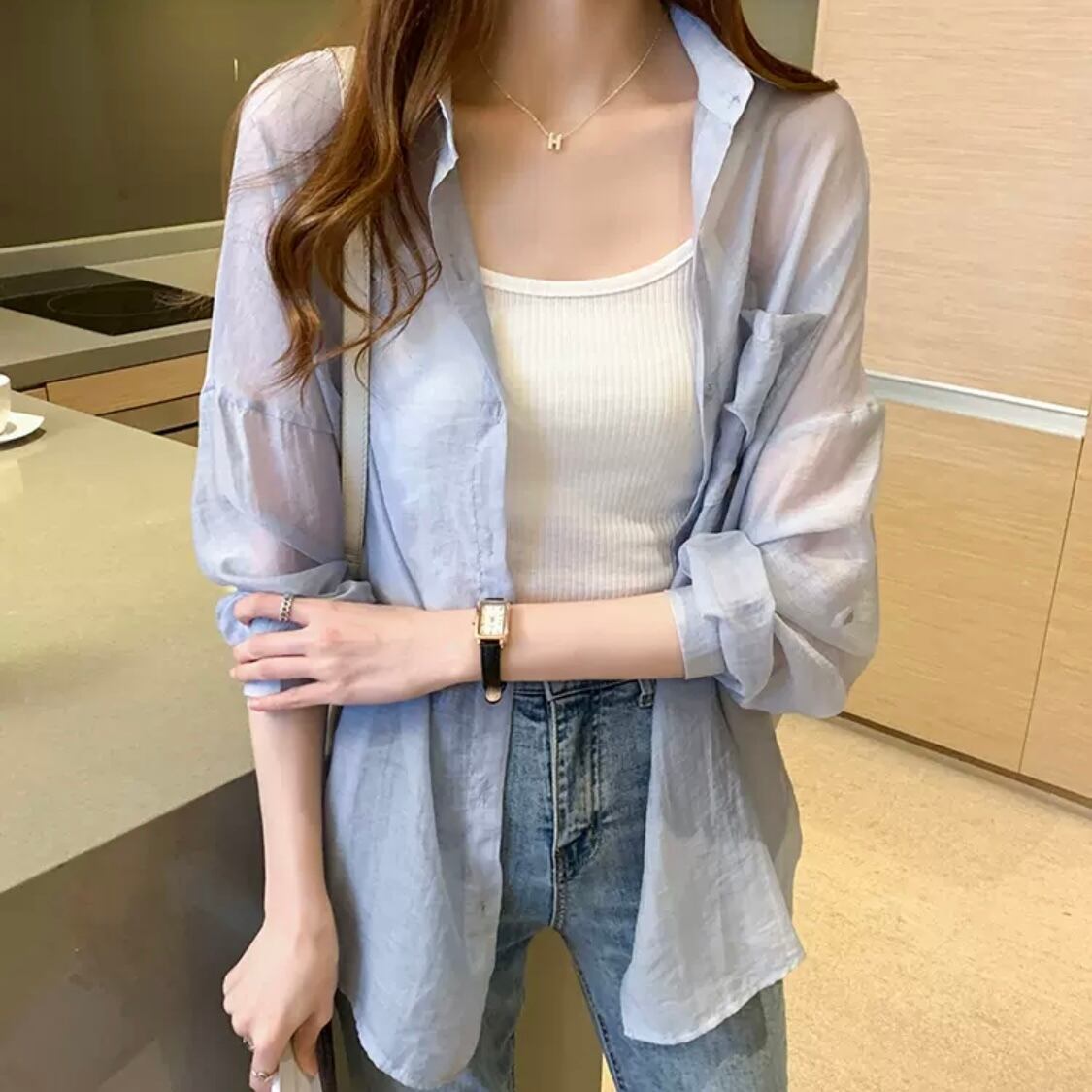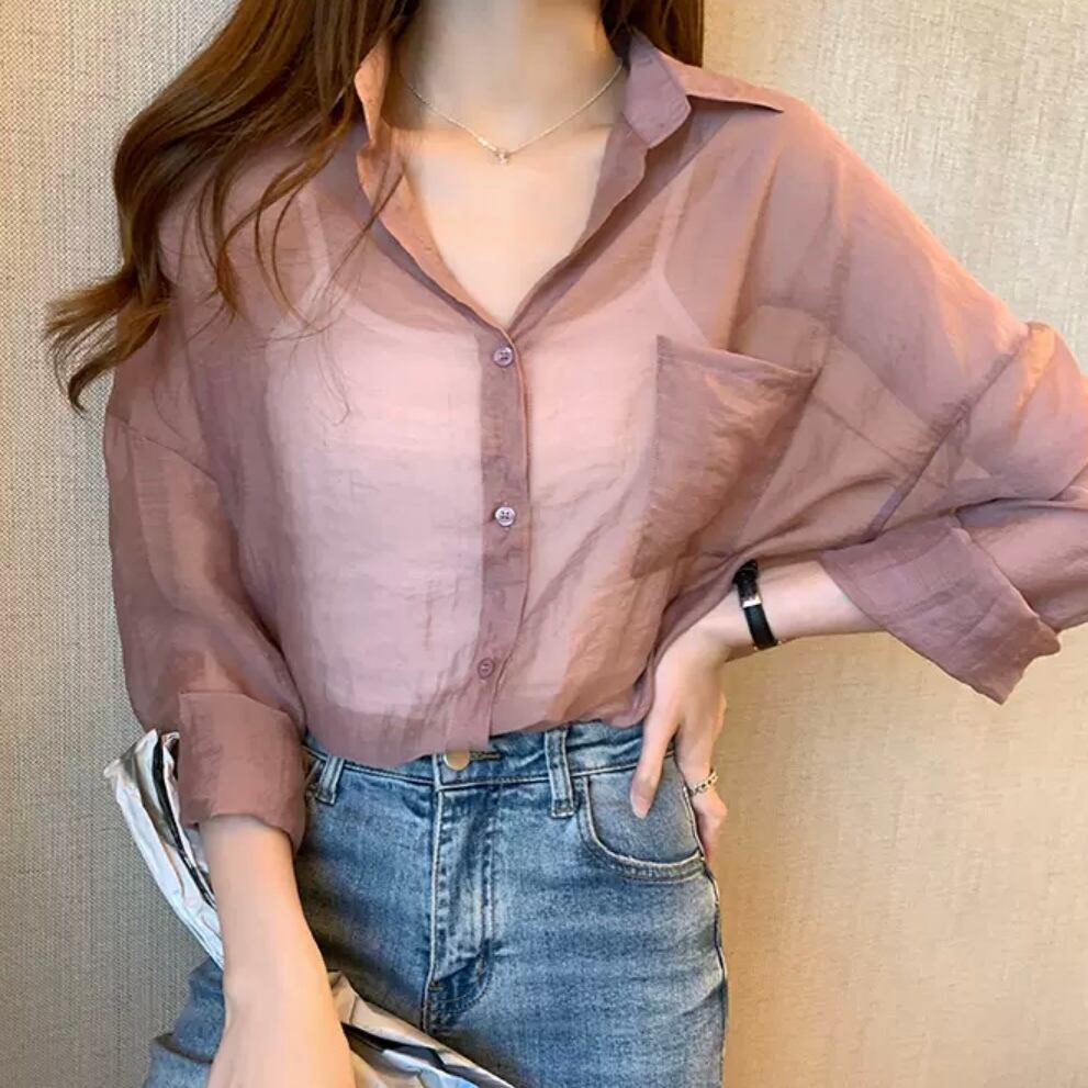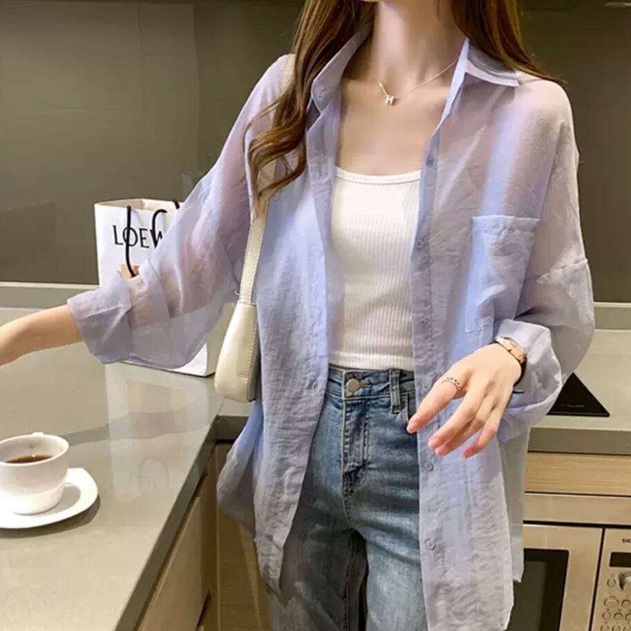 トップス シャツ ブラウス 袖あり 長袖 Vネック 襟付き シフォン 前開き 透け感 シースルー 薄手 かわいい 大人可愛い きれいめ シンプル カジュアル 大人 上品 おしゃれ お洒落 大人女子 こなれ感 ラフ セクシー とろみ感 抜け感 無地 春 夏 秋 10代 20代 30代 40代 50代 60代 レディース 学生 通学 デート お出かけ 公園デビュー 女子会 休日 リゾート 海 プール 着回し 普段使い 重ね着 韓国 韓国系 オルチャン ファッション コーデ スタイル カラバリ 色展開