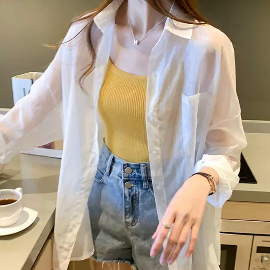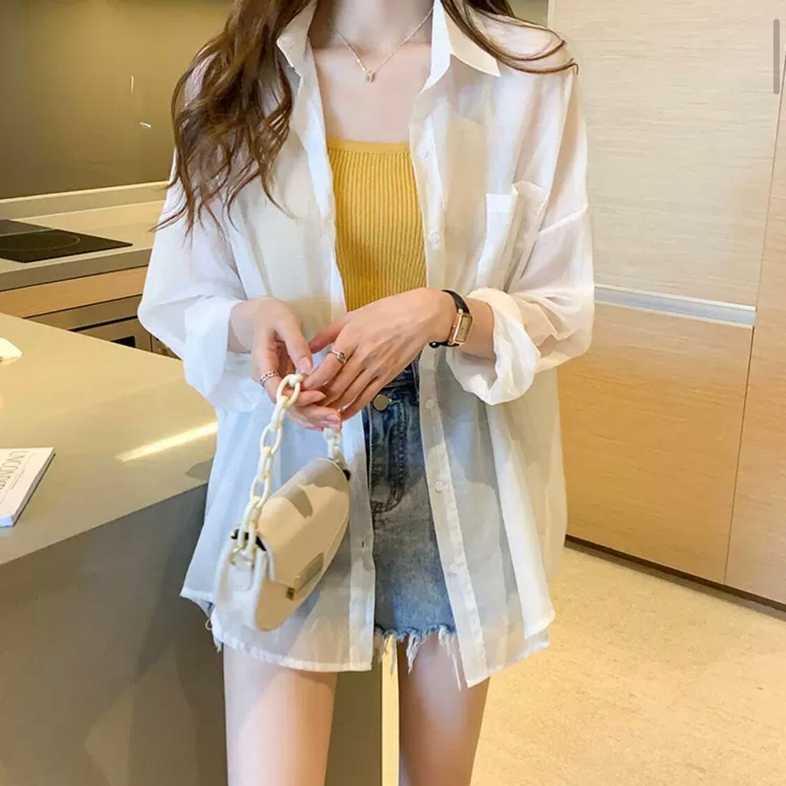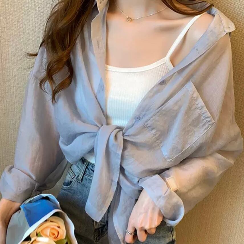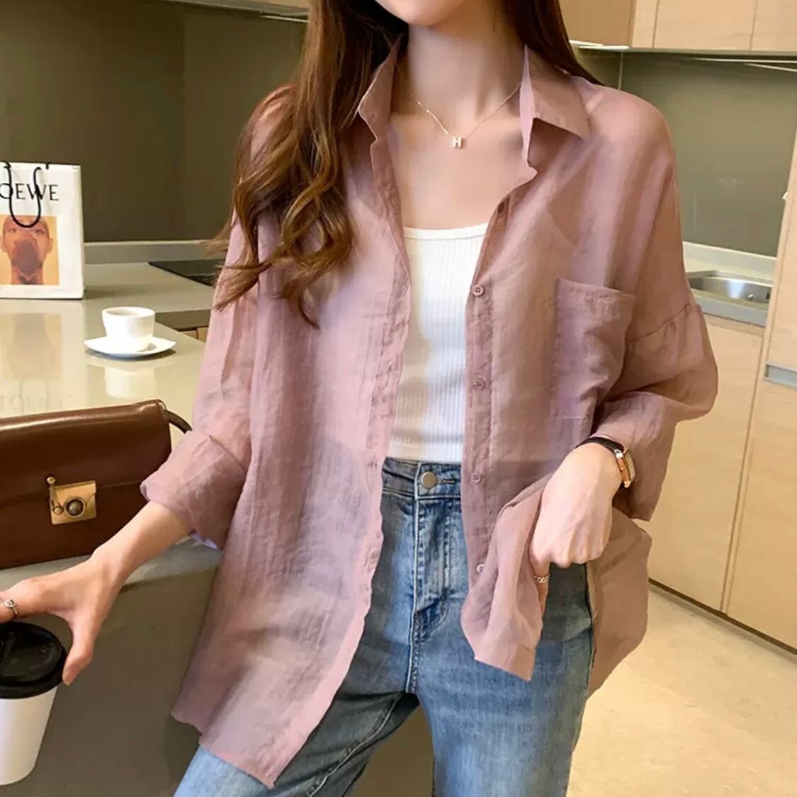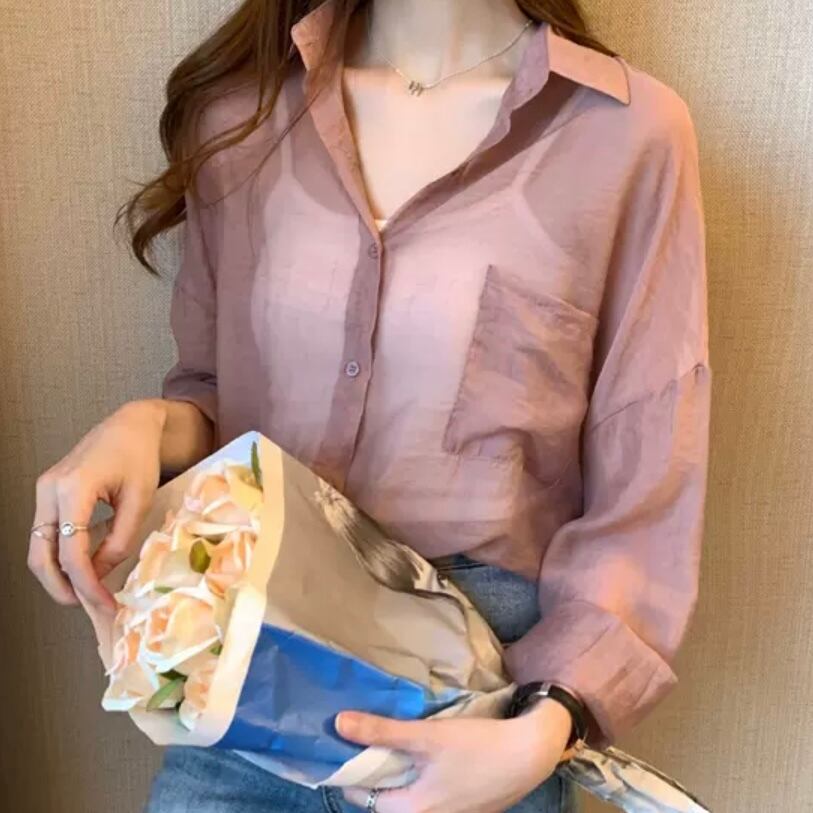トップス シャツ ブラウス 袖あり 長袖 Vネック 襟付き シフォン 前開き 透け感 シースルー 薄手 かわいい 大人可愛い きれいめ シンプル カジュアル 大人 上品 おしゃれ お洒落 大人女子 こなれ感 ラフ セクシー とろみ感 抜け感 無地 春 夏 秋 10代 20代 30代 40代 50代 60代 レディース 学生 通学 デート お出かけ 公園デビュー 女子会 休日 リゾート 海 プール 着回し 普段使い 重ね着 韓国 韓国系 オルチャン ファッション コーデ スタイル カラバリ 色展開