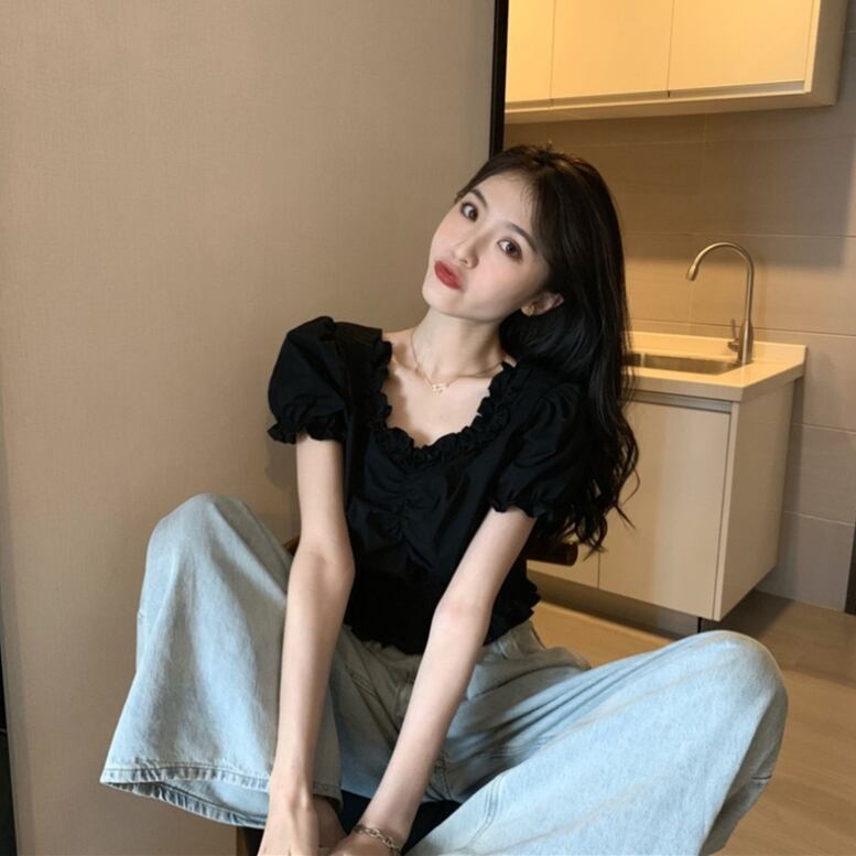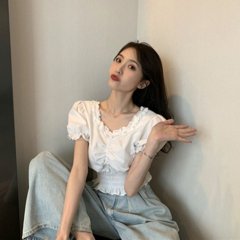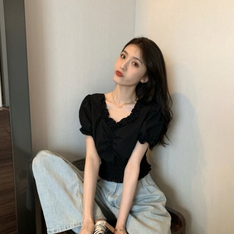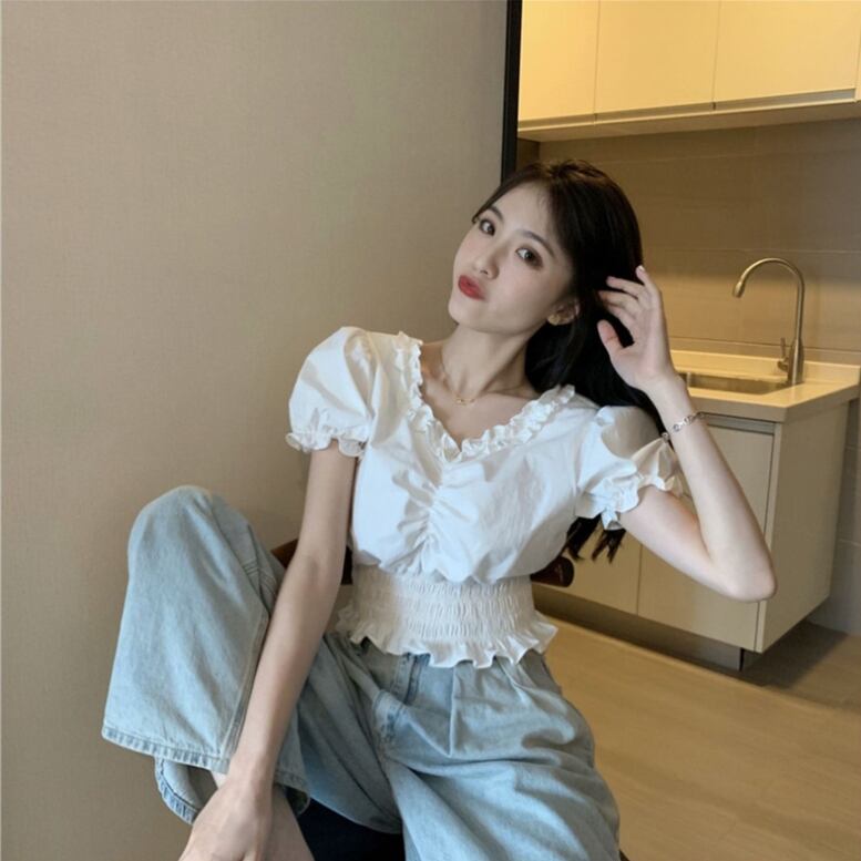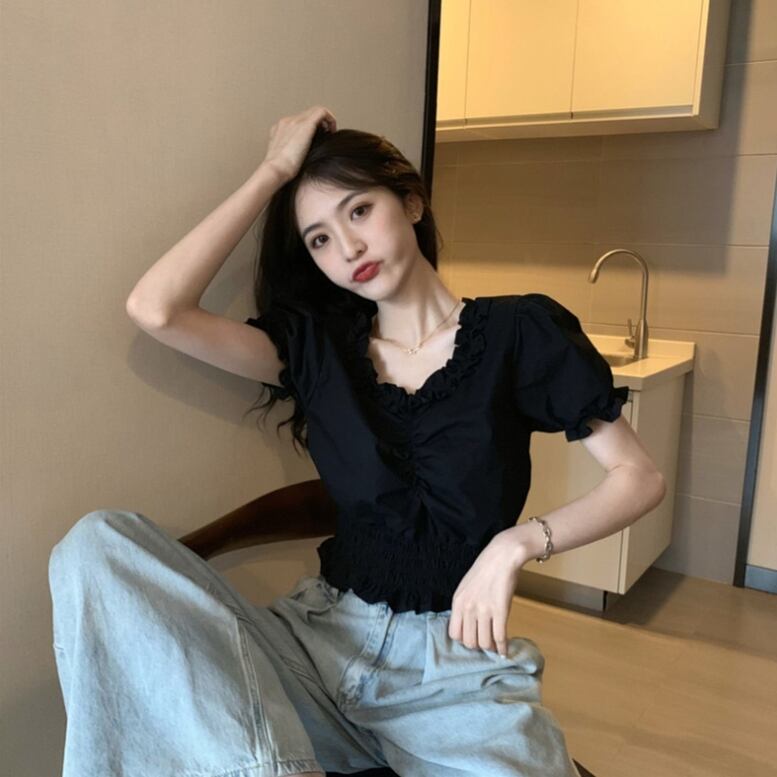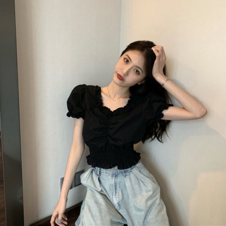 ブラウス トップス シャーリングブラウス レディース シャーリングシャツ フリルブラウス パフスリーブ クロップドブラウス シャツ 半袖 フリル メリハリ ガーリー 無地 白 黒 ホワイト ブラック オシャレ シンプル 可愛い キレイめ 上品 カジュアル 春 夏 秋 冬 デイリー おでかけ 公園コーデ アウトドア 普段着 王道 万能 ミニマム スマート コンパクト 細見え スタイルアップ 高見え 新鮮 上級者 主役級 鮮度アップ トレンド 動きやすい 軽やか ゆったり 体型カバー インスタ映え