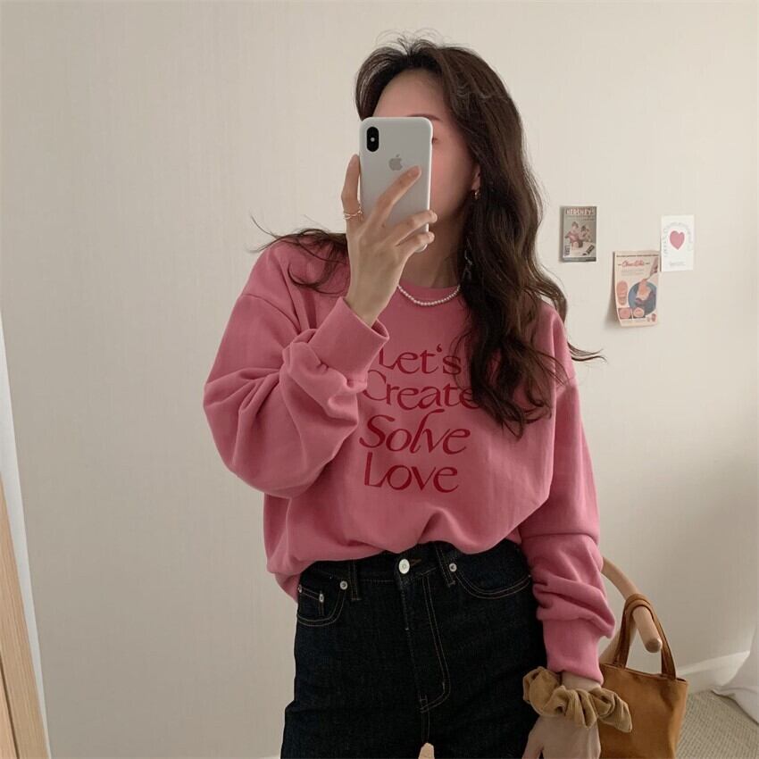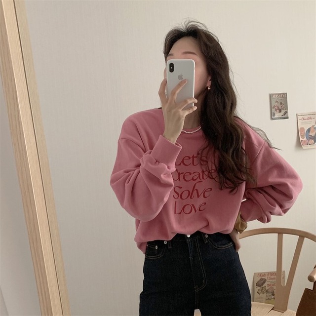 トップス カットソー トレーナー スウェット 長袖 ラウンドネック Iライン かわいい 大人可愛い シンプル カジュアル 大人 おしゃれ お洒落 レトロ エキゾチック 大人可愛い 大人女子 こなれ感 ラフ スポーティー ラブリー キュート ガーリー 個性的 主役級 存在感 とろみ感 抜け感 プリント バレンタイン 10代 20代 30代 レディース 女性用 ママ 学生 通学 デート 公園デビュー 女子会 休日 アウトドア イベント 旅行 着回し 普段使い 重ね着 楽ちん モテ フリーサイズ ピンク