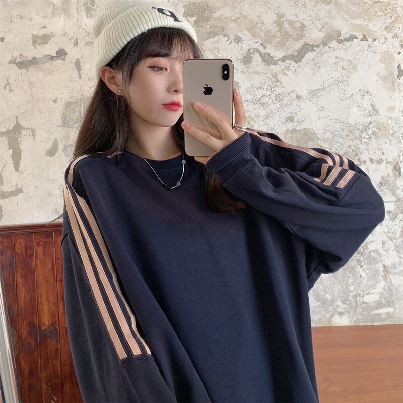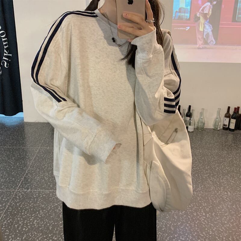 袖に3本ラインの入ったスポーティーな長袖スウェットです