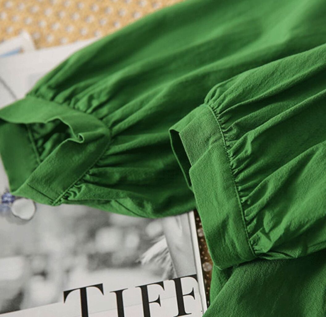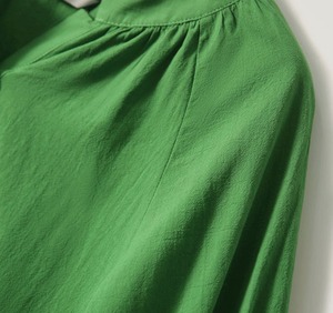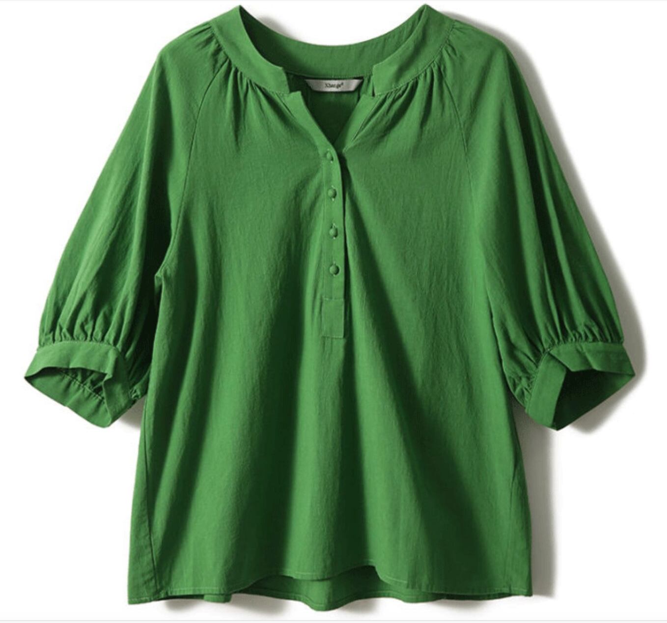 トップス シャツ ブラウス 袖あり 7分袖 七分袖 ボリューム袖 バルーンスリーブ Vネック 襟なし ノーカラー ワイド スリット バックスリット 綿 コットン かわいい 大人可愛い シンプル カジュアル 大人 おしゃれ お洒落 レトロ 大人女子 こなれ感 主役級 存在感 抜け感 無地 春 夏 10代 20代 30代 レディース 女性用 オフィス OL 通勤 学生 通学 デート お出かけ 休日 アウトドア リゾート 旅行 着回し 普段使い S M L XL ゆったり 緑 グリーン
